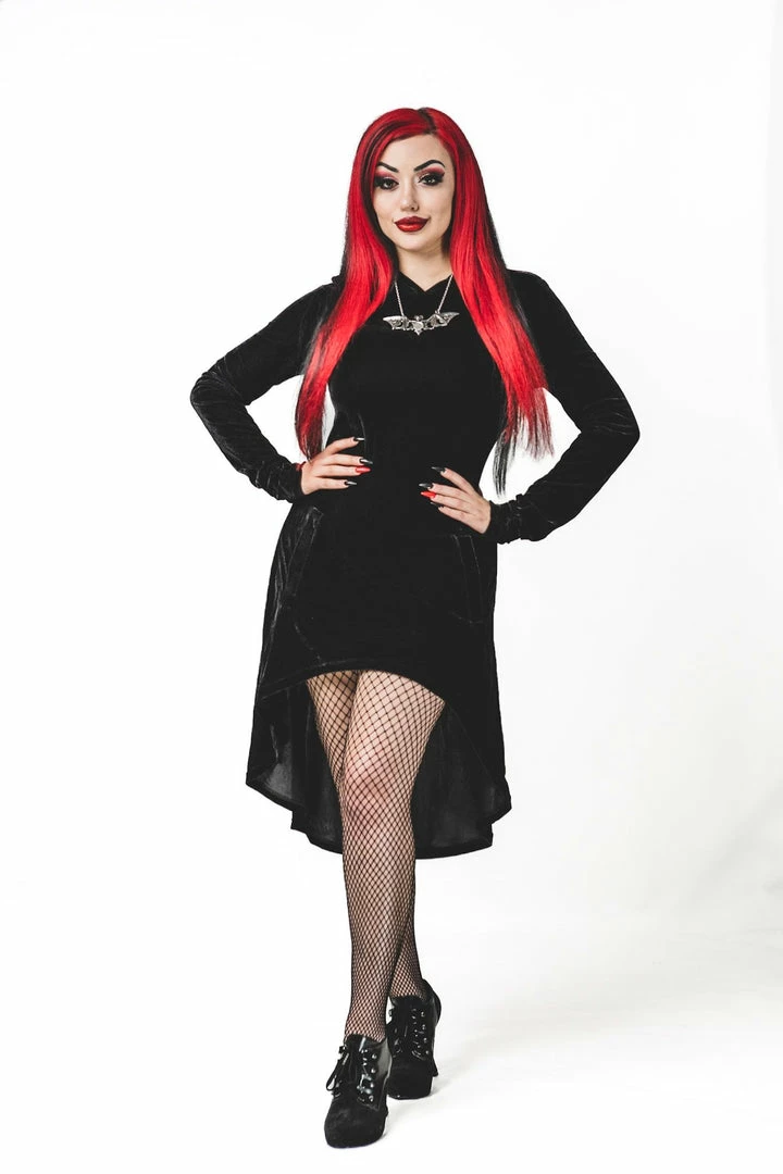 This beautiful hoodie from Necessary Evil comes in a lovely soft velvet and features long sleeves, a high – low hemline and the all important pockets.