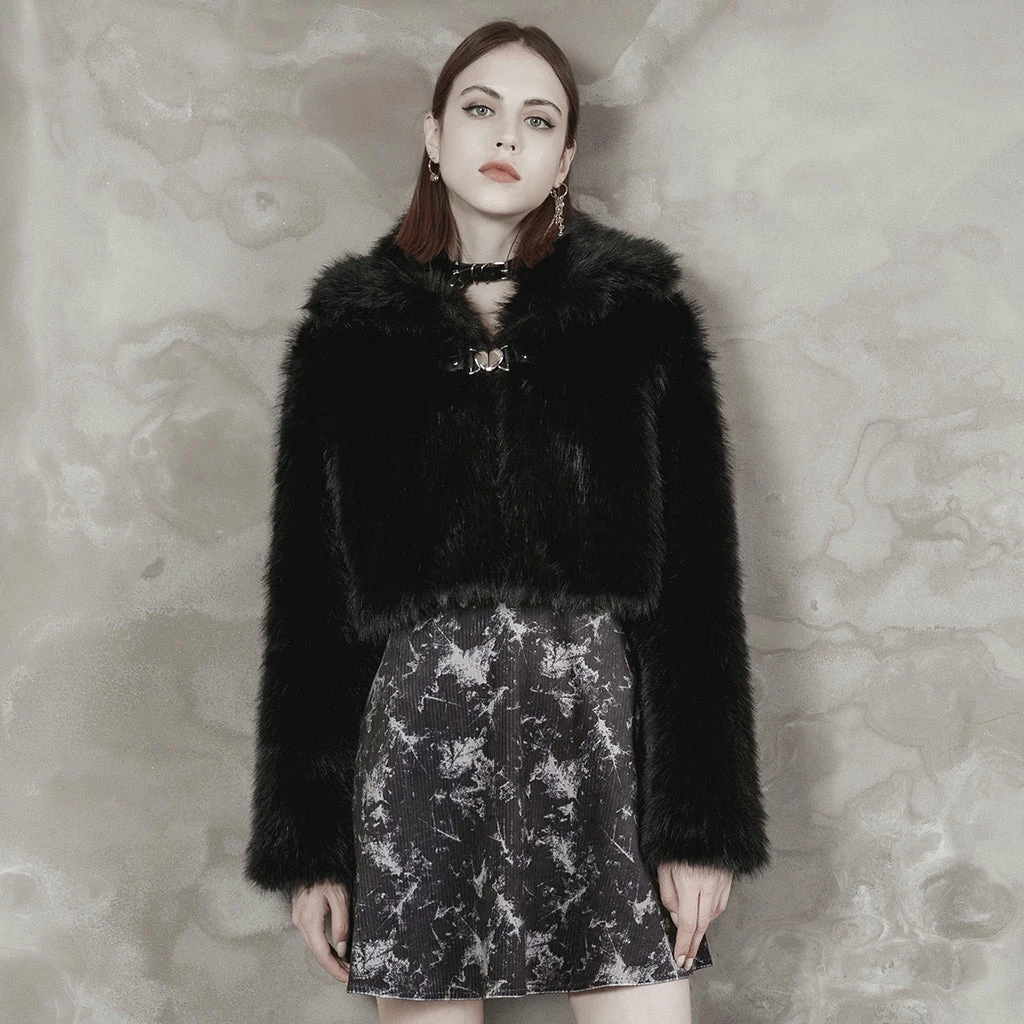 Super warm and super soft, the Alanza Jacket from Punk Rave has us ready for battle! Faux fur long sleeved jacket with collar and gorgeous heart buckle to close.