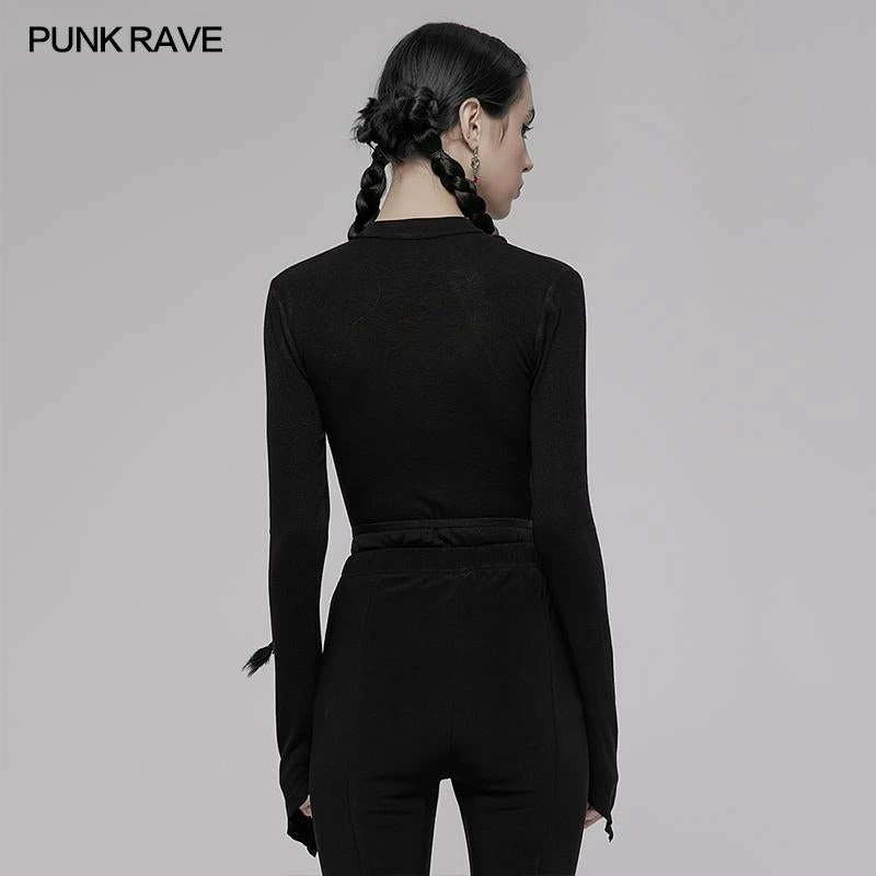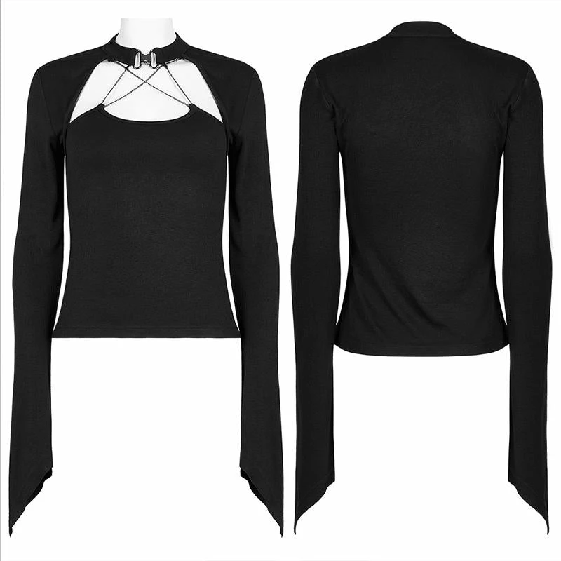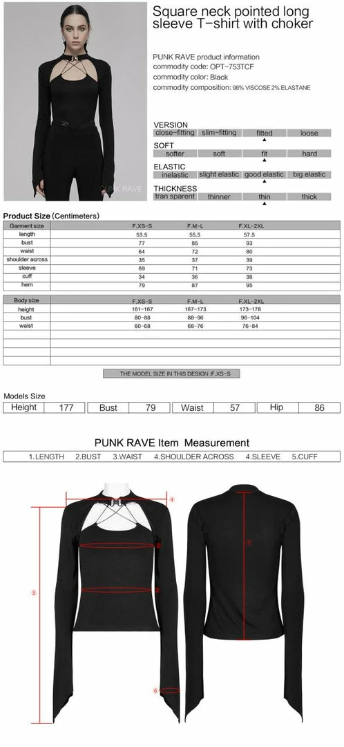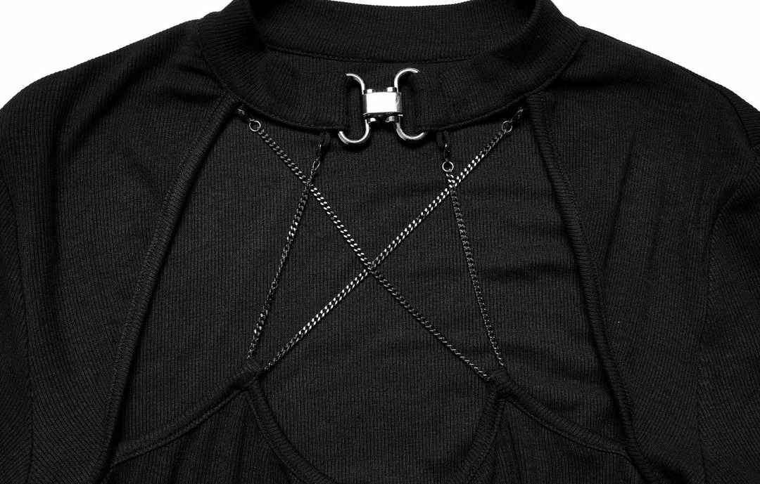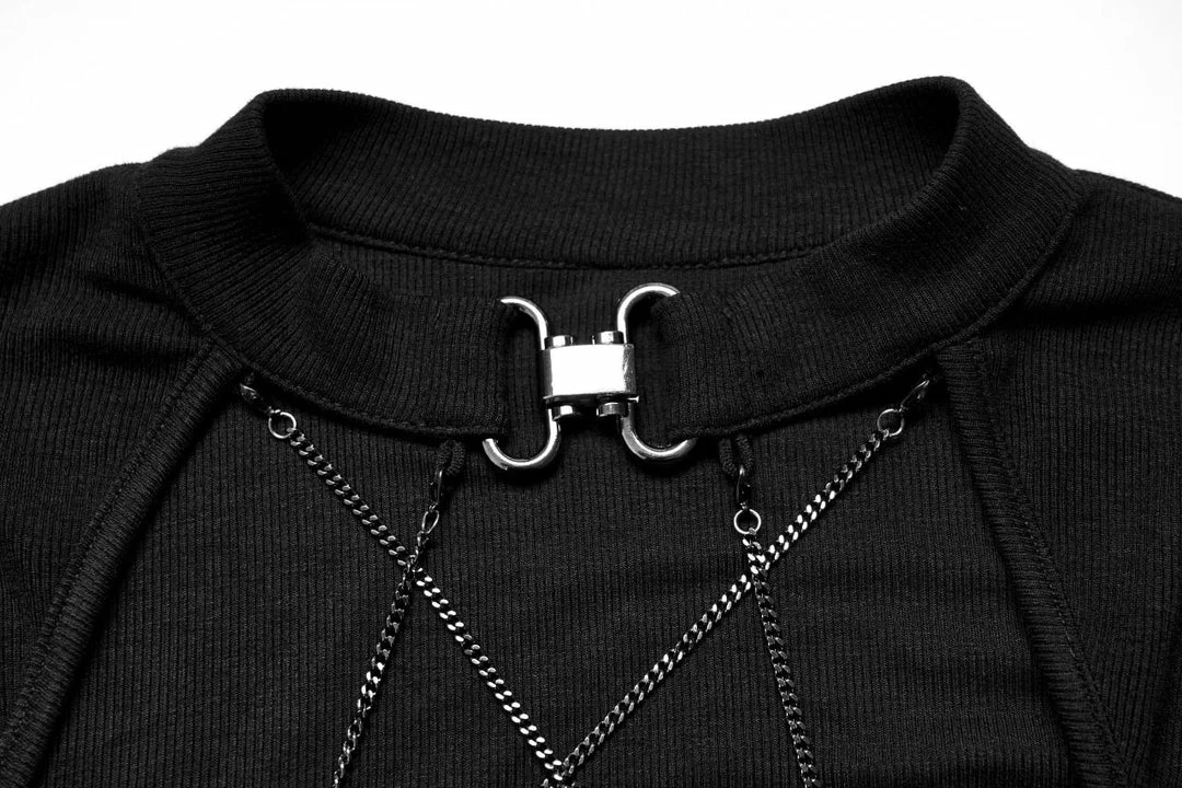 Gorgeous long sleeve top from Punk Rave featuring pointed cuffs, buckle clasp to the choker style neckline and chain detail to the cut-out décolletage. For the perfect fit and fabric composition, please see Punk Rave’s size guide in the images.