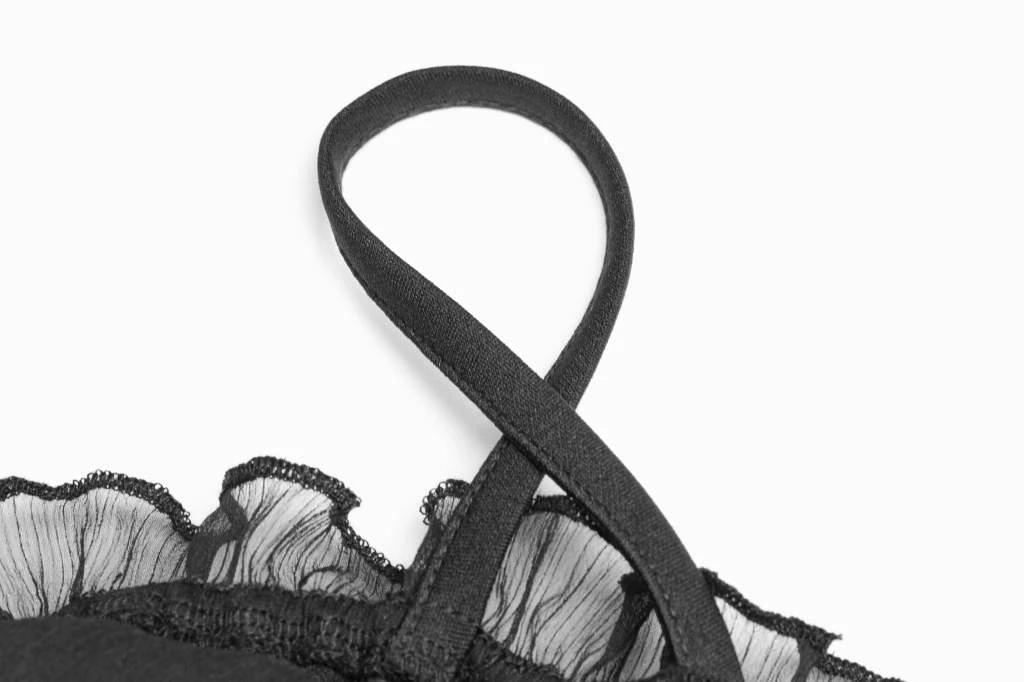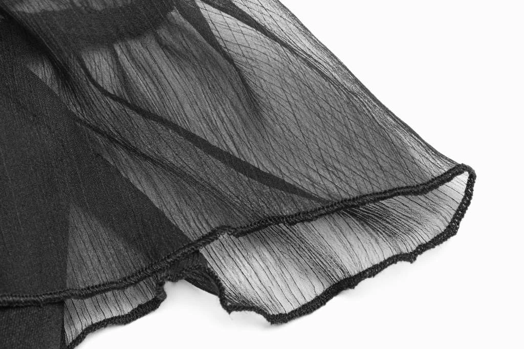 Stunning little black dress from Punk Rave featuring spaghetti straps, hidden side zip and off shoulder chiffon ruffle detail.