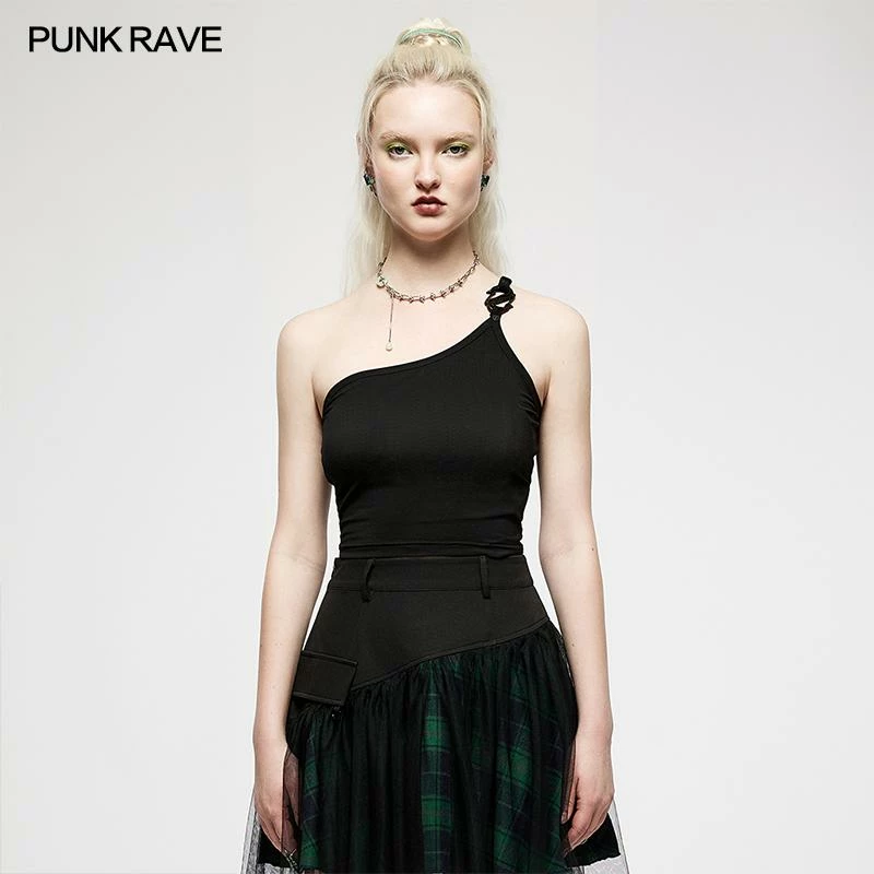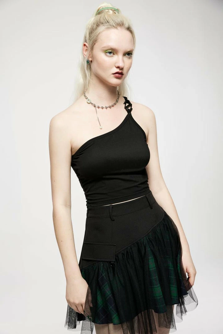 Beautiful asymmetric crop top from Punk Rave! This lovely soft stretch top has an S shaped buckle on the single spaghetti strap and looks great on. For the perfect fit and fabric composition, please see Punk Rave’s size guide in the images.