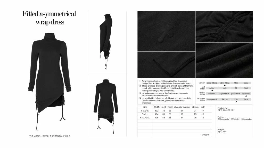 Gorgeous dress from Punk Rave features long sleeves, a high neckline with ruched detailing, faux suede cross applique and adjustable drawstring ruching to the skirt sides so you can change your look to suit your mood.