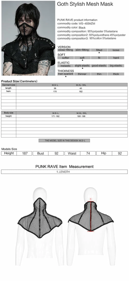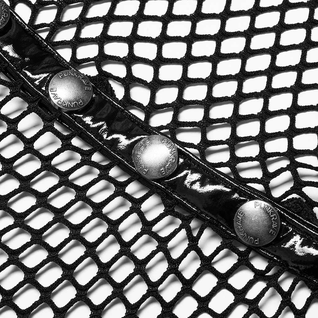 Stylish black mesh mask by Punk Rave that is made of micro elastic coarse mesh spliced with lacquer. The unique design makes it more stylish and adds a sense of mystery. The buttons on both sides can be opened for easy putting on and off.