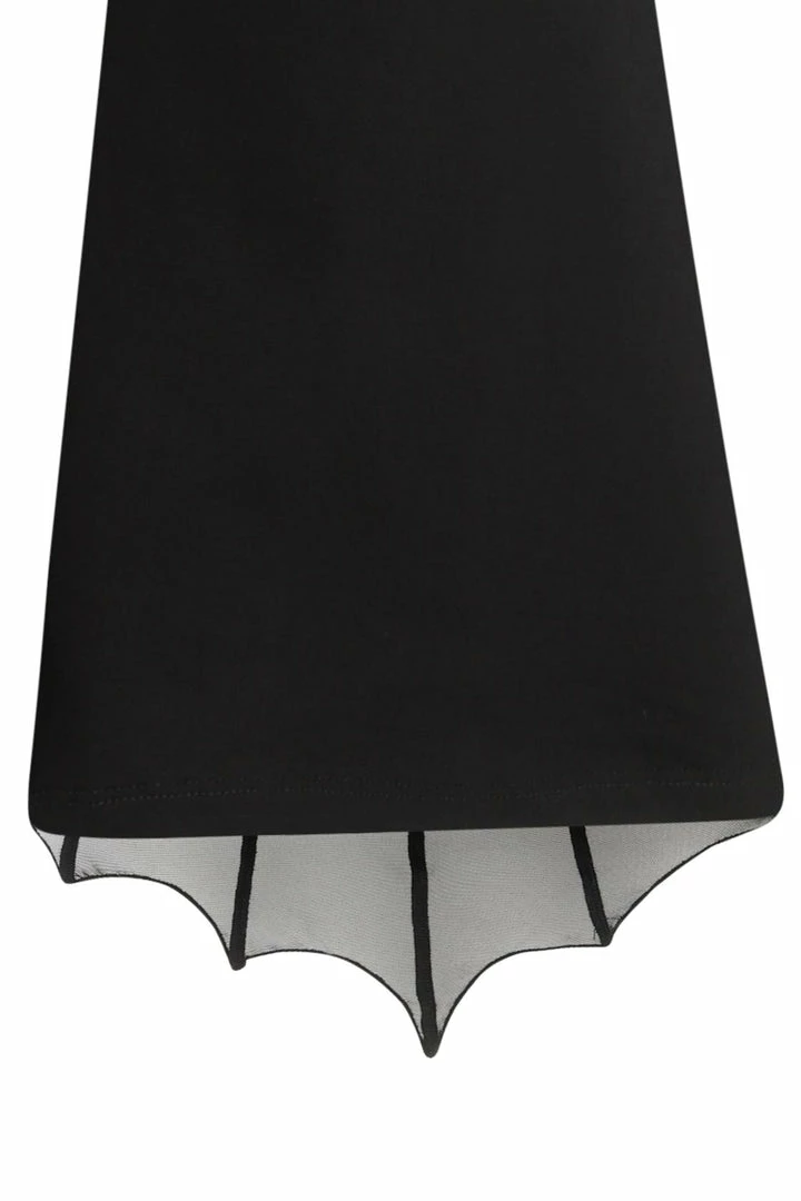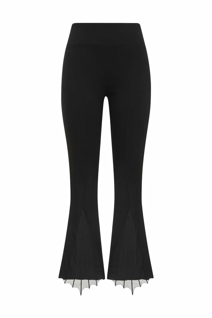 Gorgeous flared trousers from Necessary Evil featuring a soft waistband and a bat wing inspired mesh panel to the front of the flared cuffs. Perfect everyday piece or dress up for fabulous nights out.