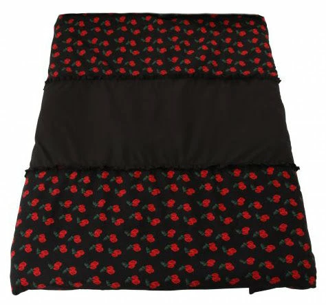 Sleep soundly under this awesome cherry themed cotton duvet cover from Necessary Evil. Stunning cherry print with a plain black panel and ruffled detail.