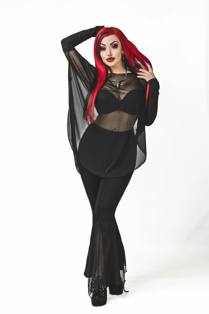 Necessary Evil Freya Mesh Draped Black Tunic Top is a gorgeous piece that is perfect for layering with delicate black mesh that will hint at your curves. Pair it with with a tank top, crop or bralet depending on the look you want. This black long sleeved tunic is versatile, flattering and easy to style!