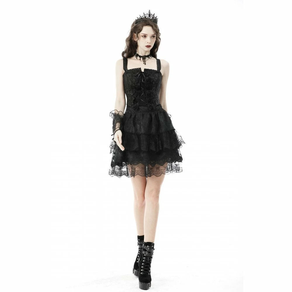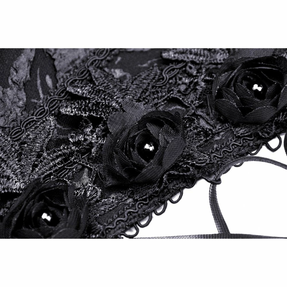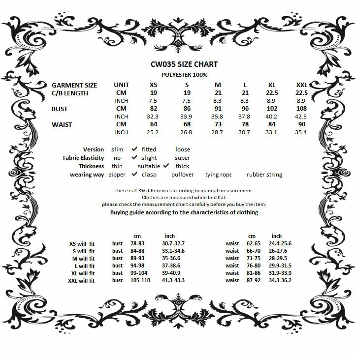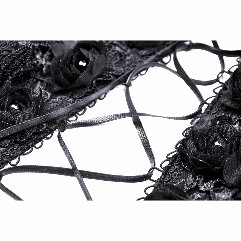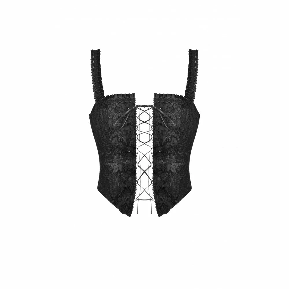 Amazing corset top from Dark in Love featuring open lacing to the front and flower detailing. Fastening with a zip to the side, this beautiful jacquard fabric top also has satin and lace applique trims. For the perfect fit and fabric composition, please see Dark in Loves size guide in the images.