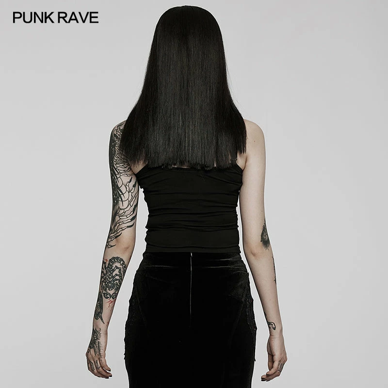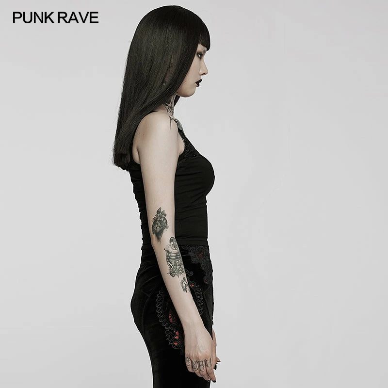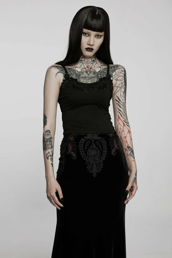 Gorgeous vest top from Punk Rave featuring adjustable spaghetti straps and striking lace applique to the neckline. For the perfect fit and fabric composition, please see Punk Rave’s size guide in the images.