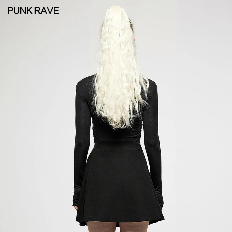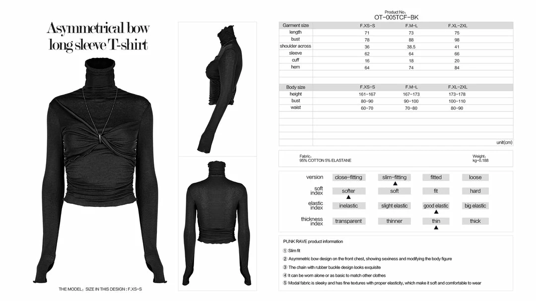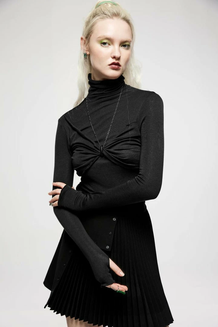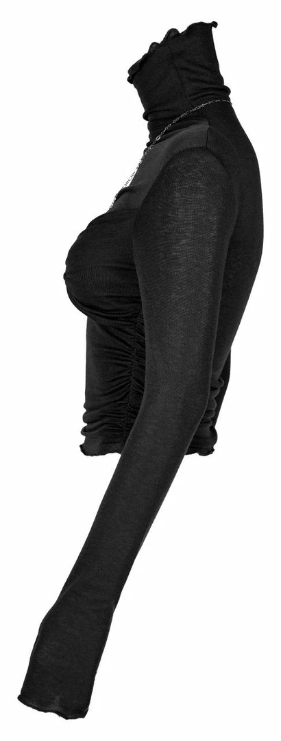 Lovely roll-neck top from Punk Rave featuring long sleeves with thumb holes to the cuffs and chain detail to the gathered bust. For the perfect fit and fabric composition, please see Punk Rave’s size guide in the images.