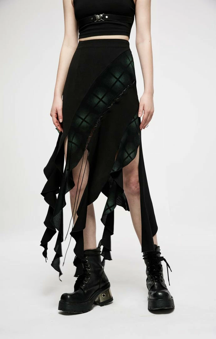 This amazing skirt from Punk Rave features an asymmetrical design with lace up detailing. Fastening with a concealed zip to the side, this lovely skirt has an irregular hemline and looks great on. For the perfect fit and fabric composition, please see Punk Rave’s size guide in the images.