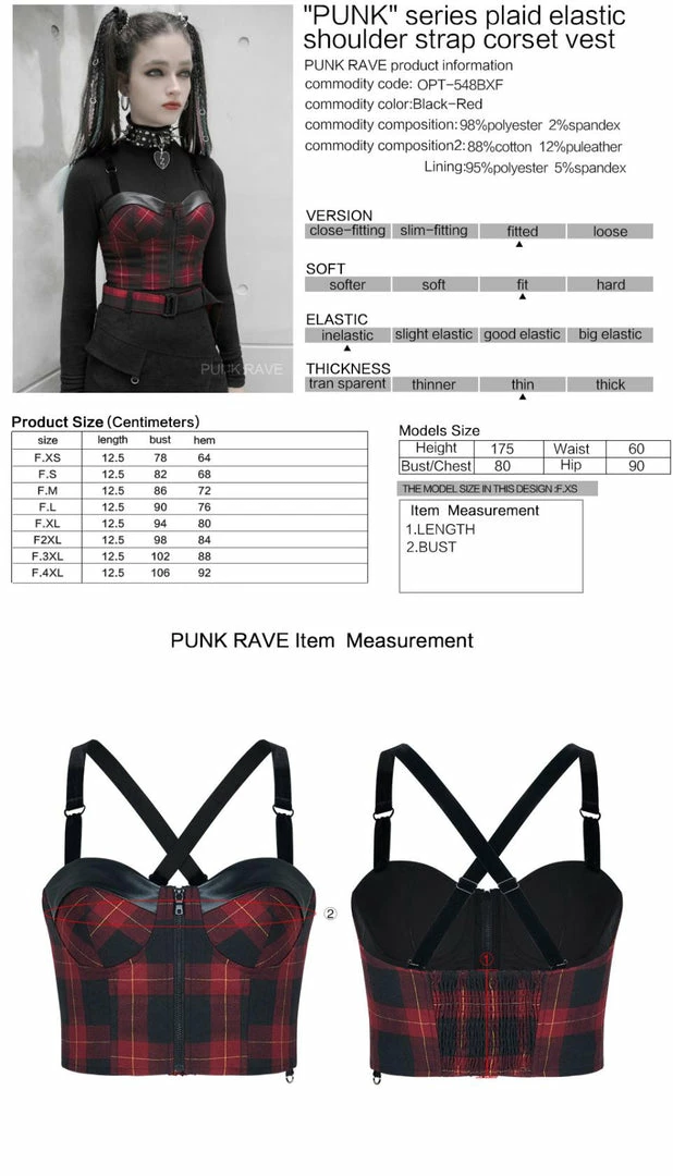 Beautiful crop top by Punk Rave in a red, black and yellow tartan. It features wide black velvety adjustable straps, faux leather fold overs at the top of the cups and a front zip. It also has a smocked panel at the back to make for a great fit. Looks amazing on it’s own or layered over a top or dress.