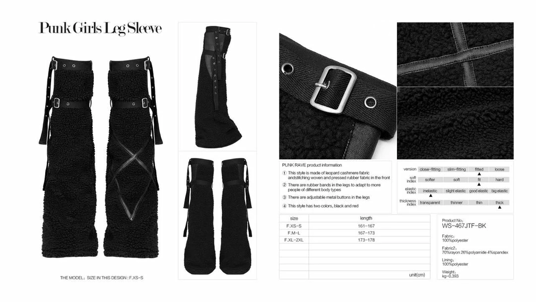 Striking fleece leg warmers from Punk Rave in a soft plain black. Fastening with 2 adjustable straps, for the perfect fit please see Punk Rave’s size guide in the images.