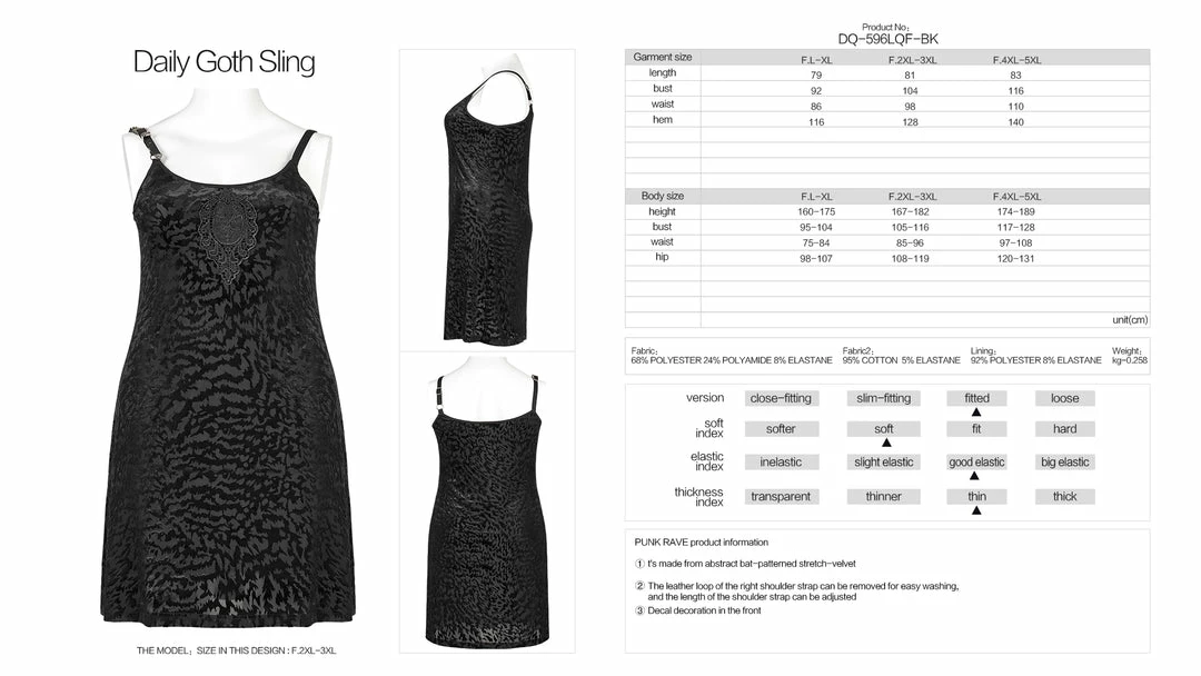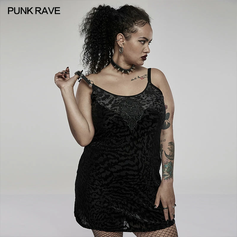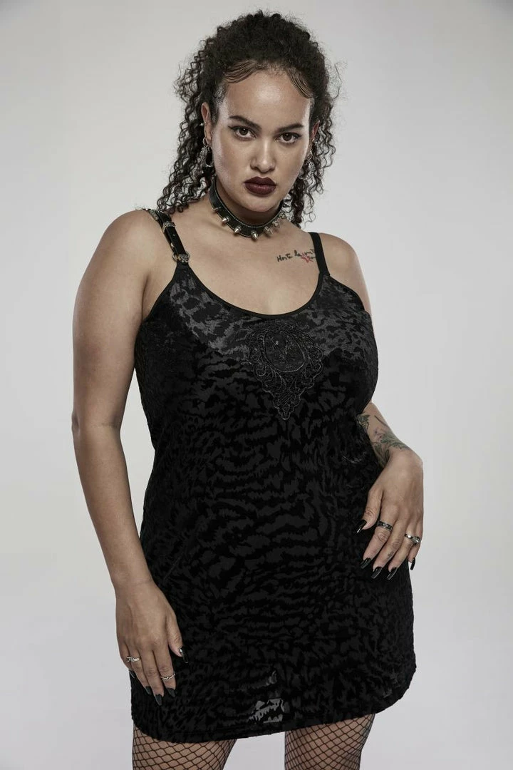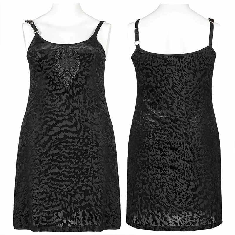 Beautiful velvet flocked mesh dress from Punk Rave featuring adjustable spaghetti straps and lace applique detail. For the perfect fit and fabric composition, please see Punk Rave’s size guide in the images.