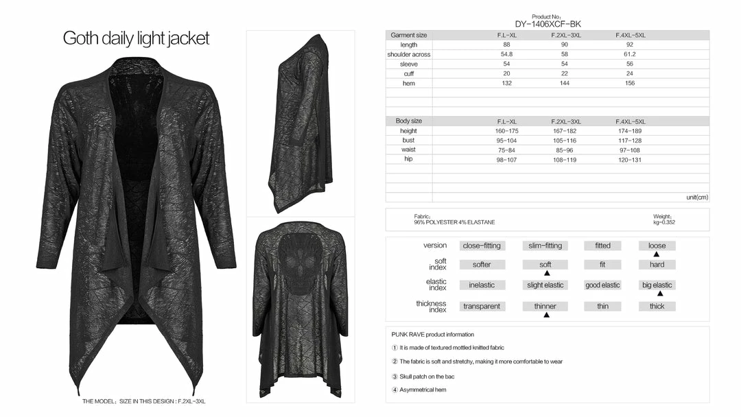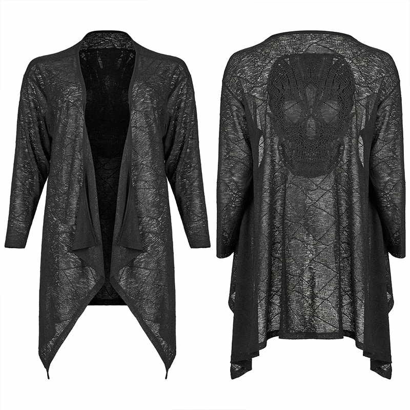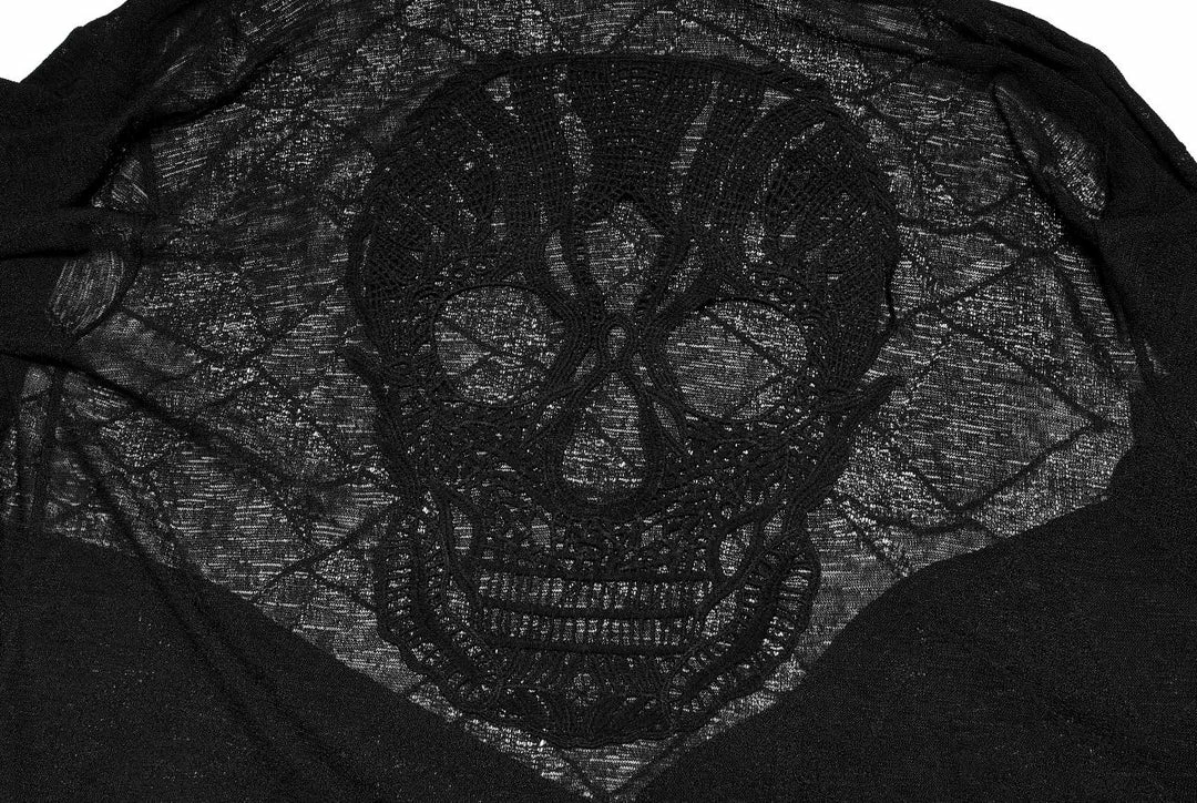 Gorgeous cardi from Punk Rave featuring long sleeves and an asymmetric hemline. With a striking lace applique skull to the back, this lightweight cardigan is perfect for those cool summer evenings. For the perfect fit and fabric composition, please see Punk Rave’s size guide in the images.