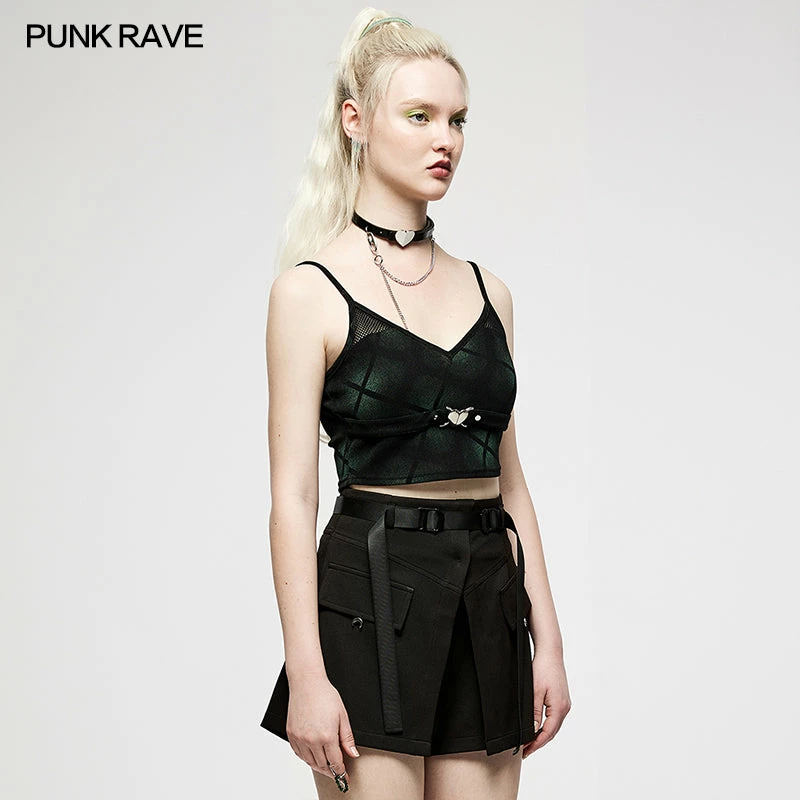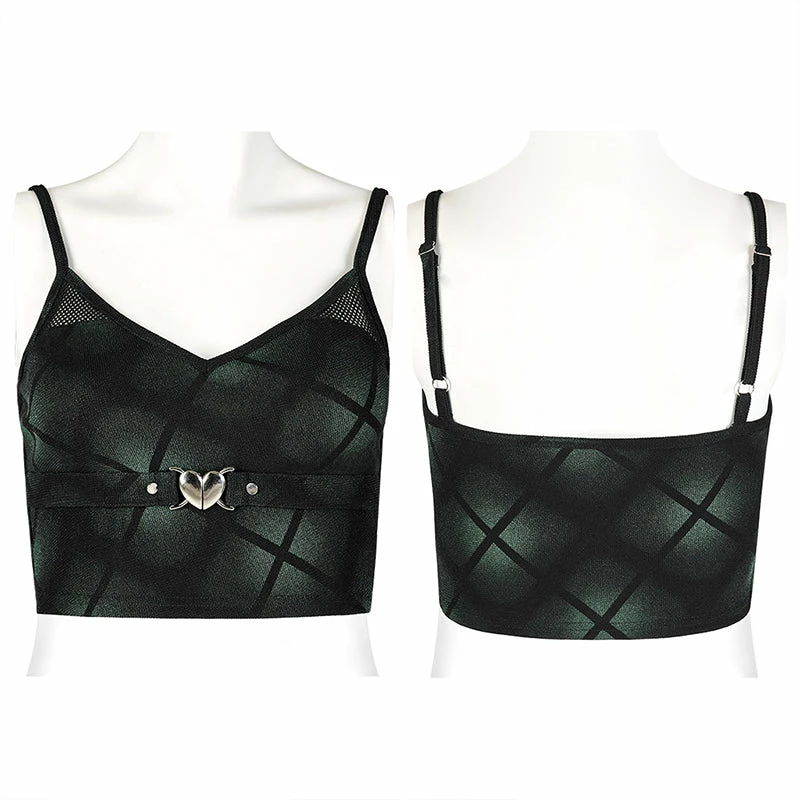 Supper cute crop top from Punk Rave featuring adjustable spaghetti straps, mesh detail and a gorgeous silver coloured heart clasp. For the perfect fit and fabric composition, please see Punk Rave’s size guide in the images.