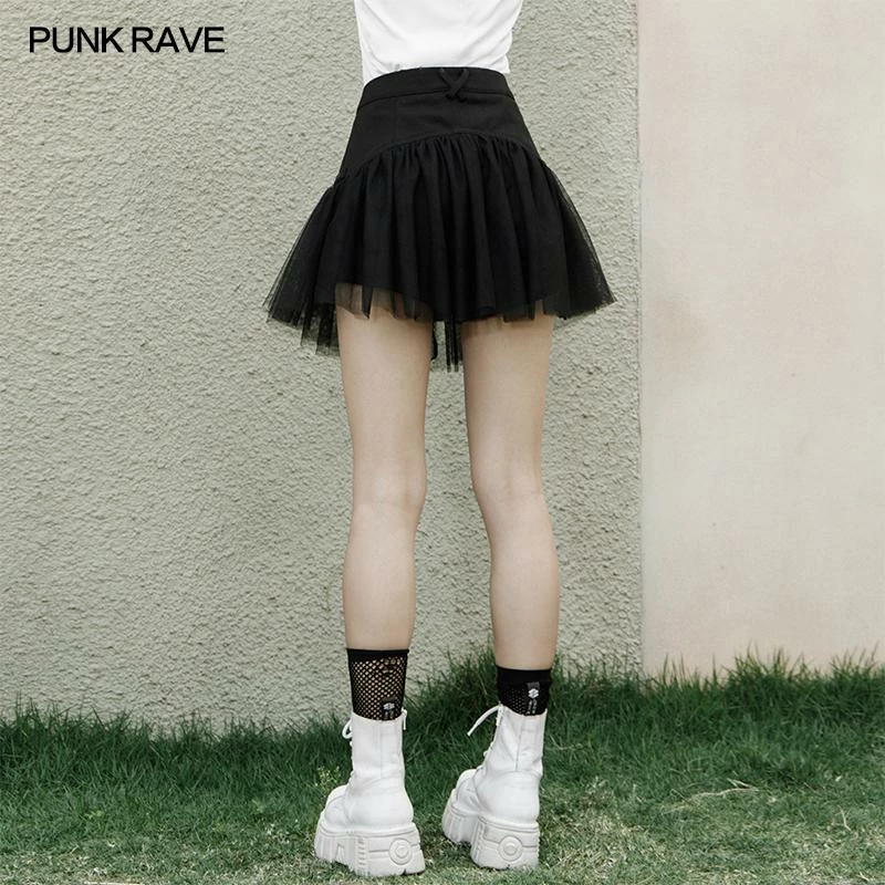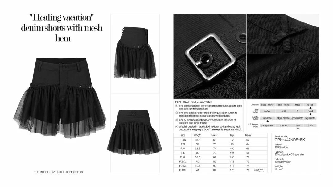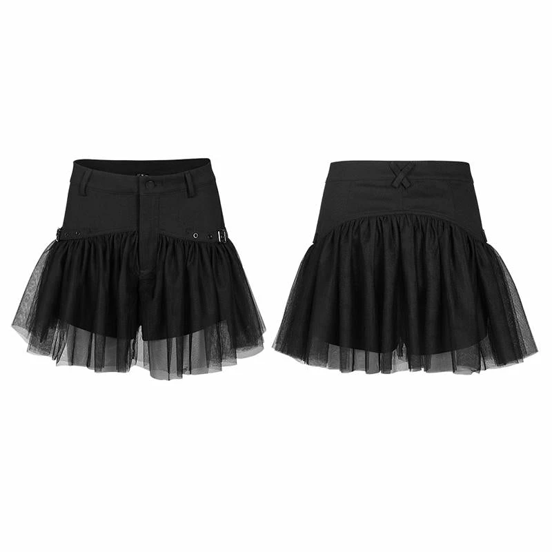 Gorgeous shorts from Punk Rave featuring a mesh skirt overlay, belt loops and eyelet & buckle detail. Fastening with a zip & button fly, for the perfect fit please see Punk Rave’s size guide in the images.