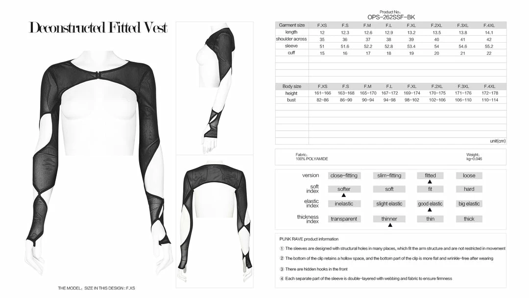 Lovely fine mesh bolero from Punk Rave featuring cut-out detail and with hook & eye fastening. For the perfect fit and fabric composition, please see Punk Rave’s size guide in the images.