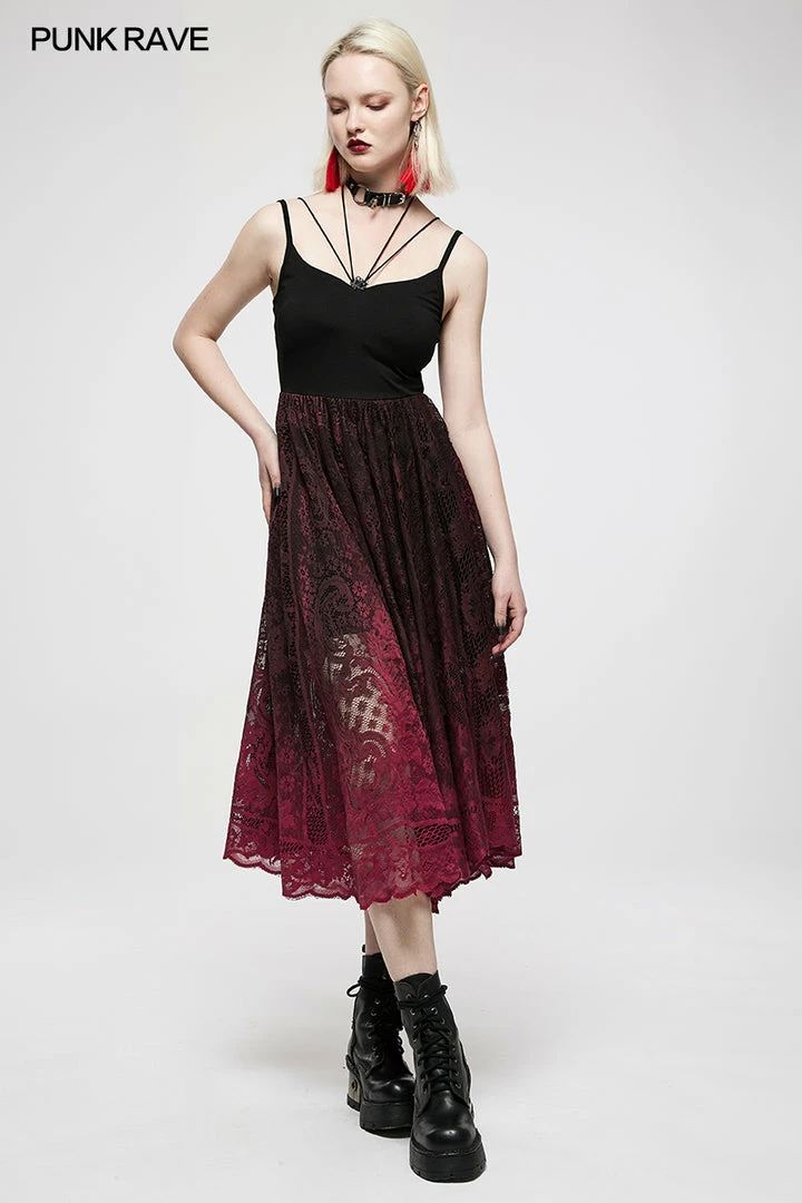 Stunning midi dress from Punk Rave featuring adjustable spaghetti straps and strap detailing. With a gorgeous lace skirt and beautiful rose pendant to the neckline, this dress looks amazing on. For the perfect fit and fabric composition, please see Punk Rave’s size guide in the images.