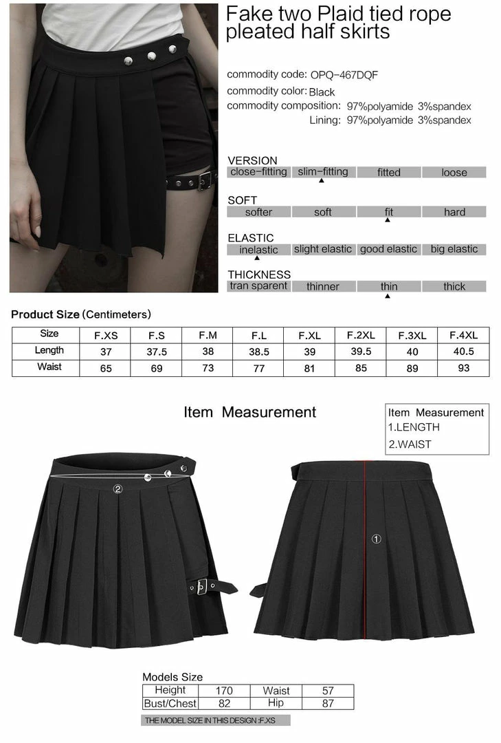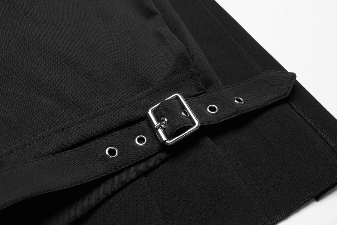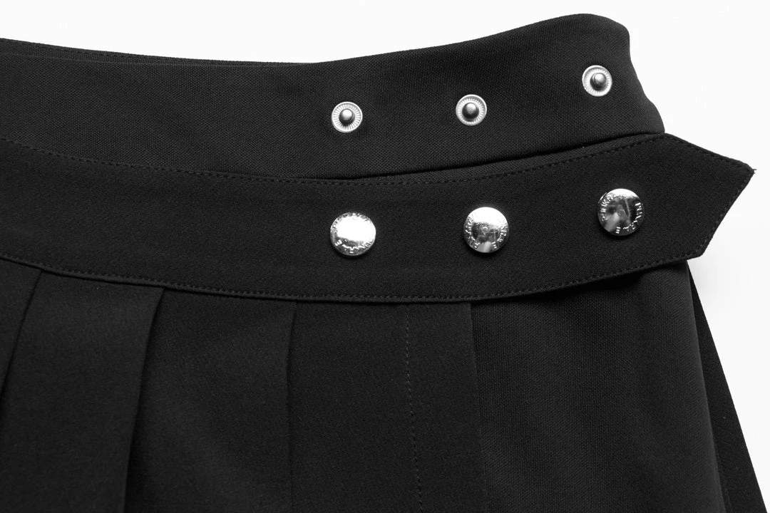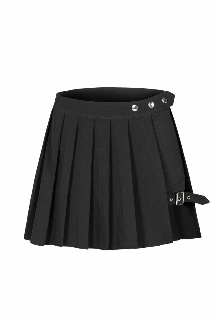 This fabulous pleated skirt from Punk Rave features an asymmetric design, three metal snap buttons, hidden side zip, built in shorts and adjustable leg belt. For the perfect fit please see Punk Rave’s size guide in the images.