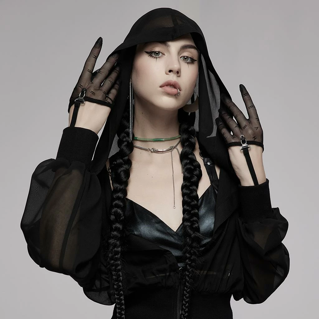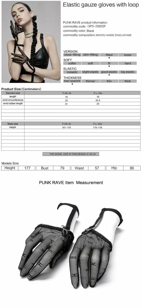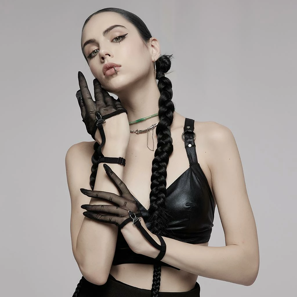 Striking accessory from Punk Rave. These stunning mesh gloves come with an adjustable and detachable wrist loop for the perfect fit and letter detail.