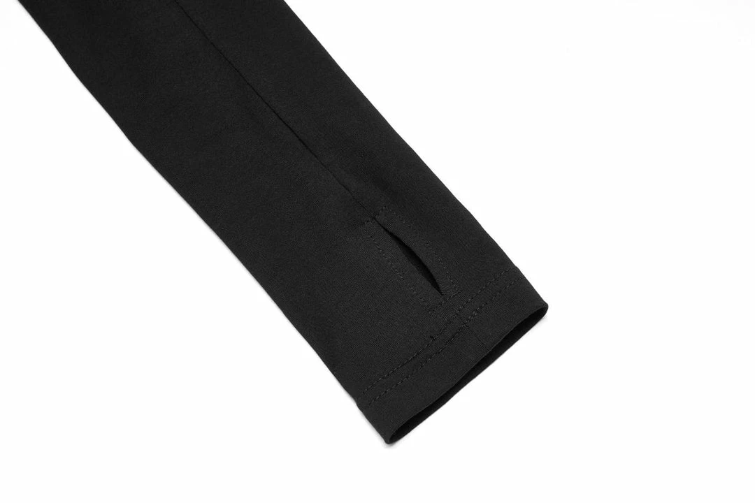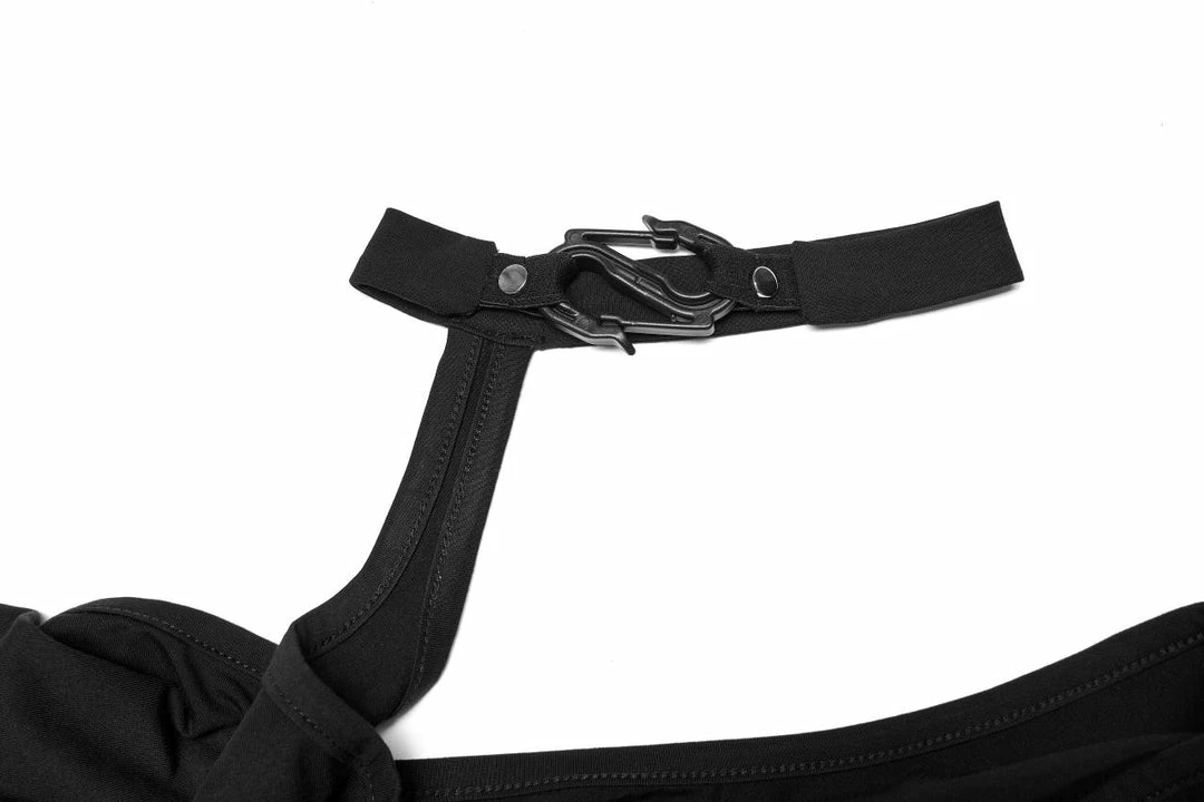 Beautiful asymmetrical bodycon dress from Punk Rave featuring long sleeves with thumb hole cut-outs, asymmetric cold shoulder design and S shaped buckle to the choker. For the perfect fit and fabric composition, please see Punk Rave’s size guide in the images.