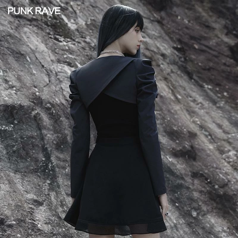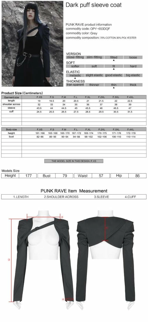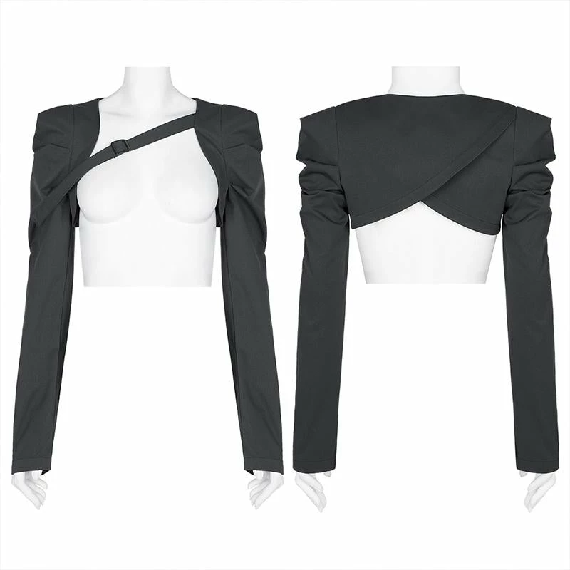 Beautiful bolero from Punk Rave with puff sleeves and diagonal strap fastening. For the perfect fit and fabric composition, please see Punk Rave’s size guide in the images.