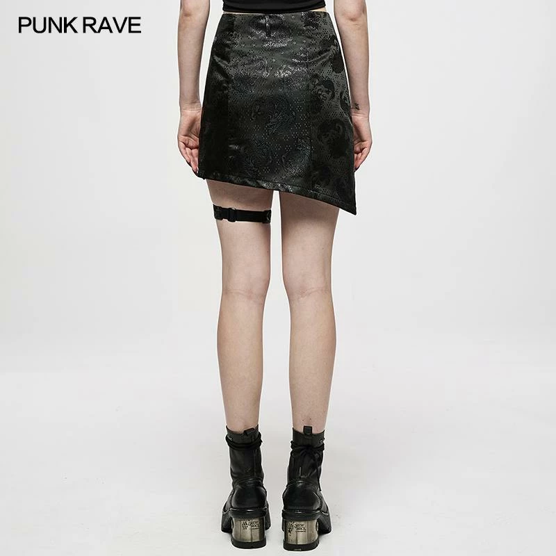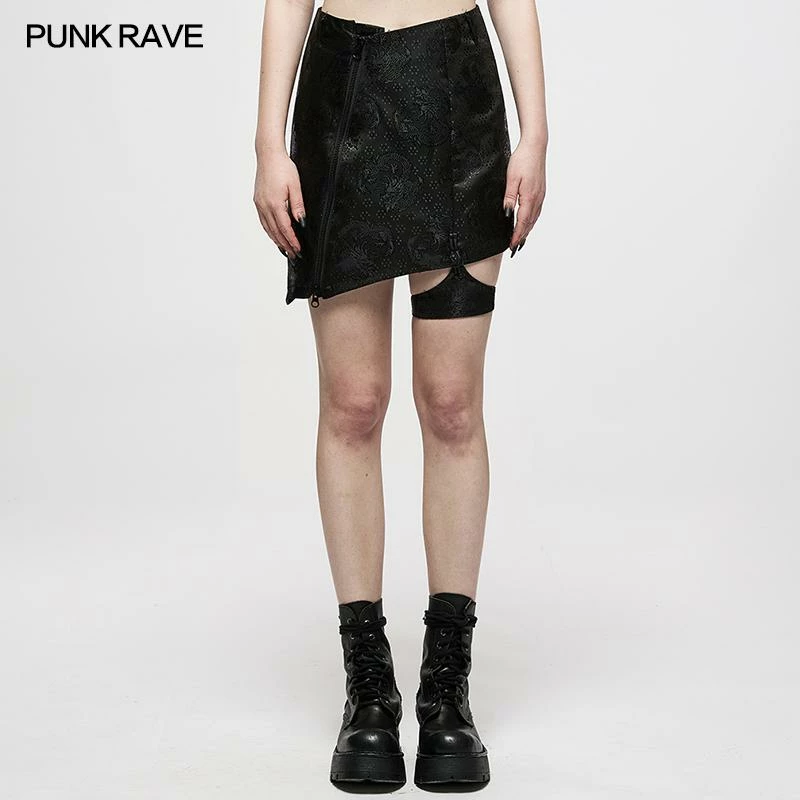 Simply stunning asymmetrical skirt from Punk Rave! Fastening with an exposed asymmetric zip to the front, this lovely skirt has a detachable leg loop and looks great on. For the perfect fit and fabric composition, please see Punk Rave’s size guide in the images.