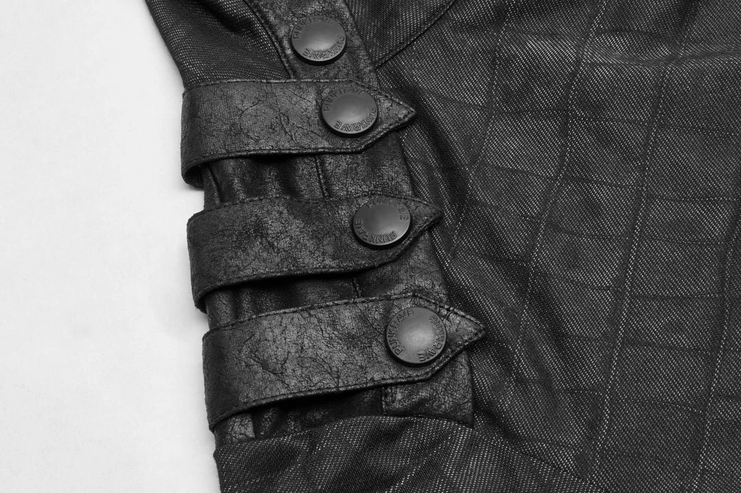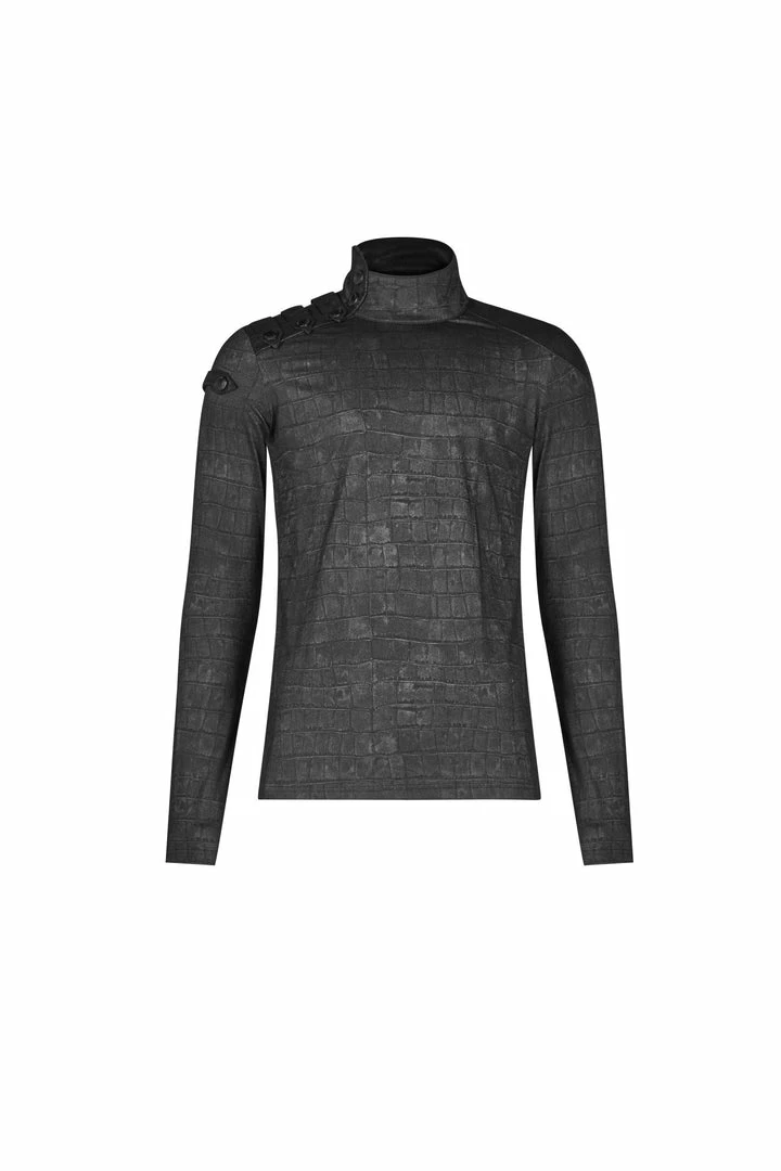 The awesome Nestor top from Punk Rave features a subtle shimmer design with contrast faux leather strap detailing on the neckline and patches on the shoulder. Super lightweight, this long sleeve top can be worn all throughout the day at any event with ease. Measures approximately 28″ from shoulder to hem.