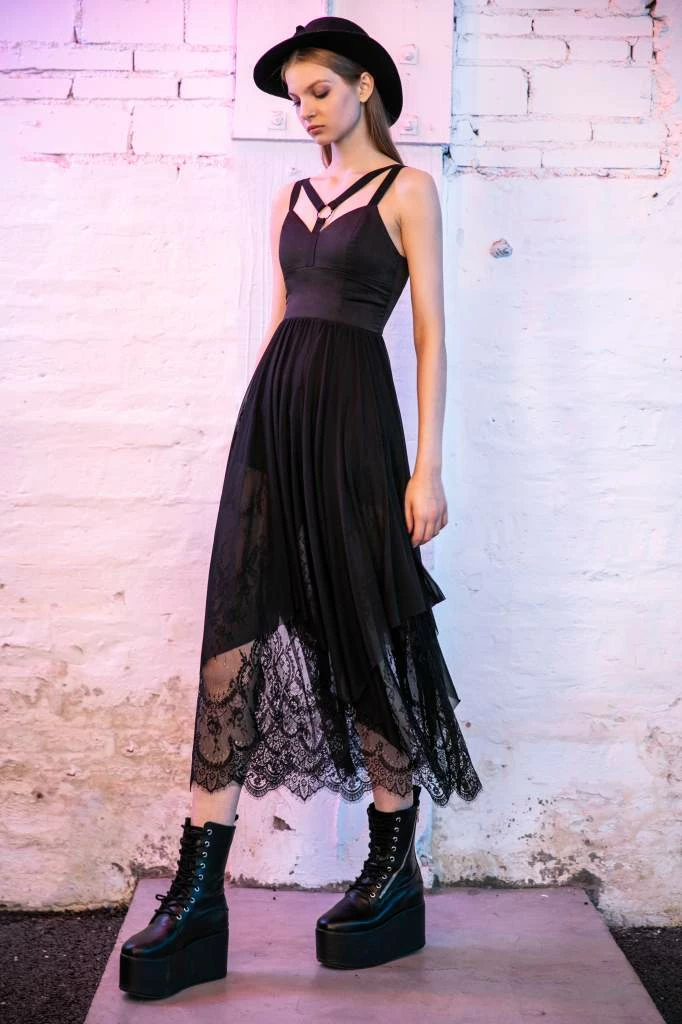 The Philomena dress from Punk Rave is simply stunning. Featuring adjustable elasticated shoulder straps, sweetheart neckline, princess and under bust seams, hidden side zip and a delicate lace skirt with mesh overlay and irregular hemline. Complete with an elasticated panel on the back for that perfect fit. Please Note; Punk Rave clothing is on the smaller size so if in doubt size up.