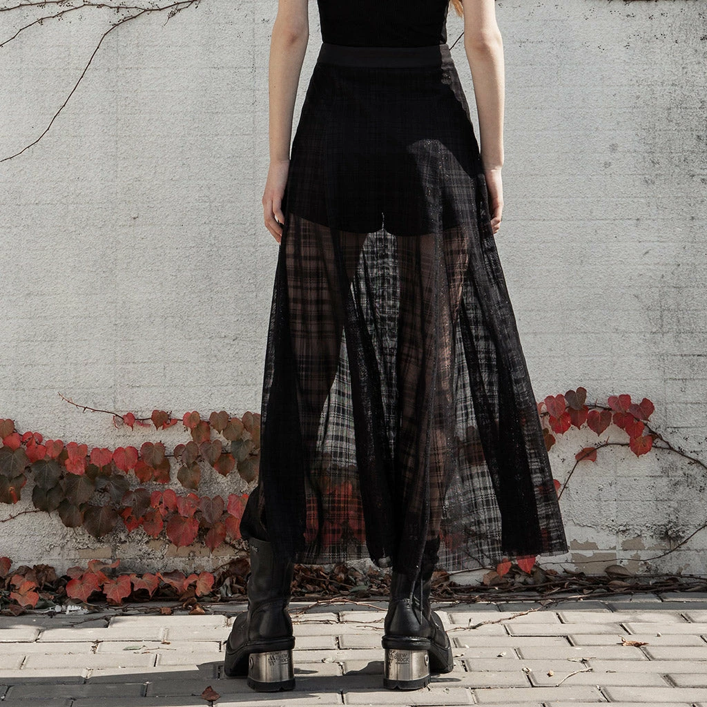 Must-have black mesh skirt from Punk Rave. This lovely double layered skirt is made with a black mesh fabric overlayer with lace up detailing and a short underlayer.