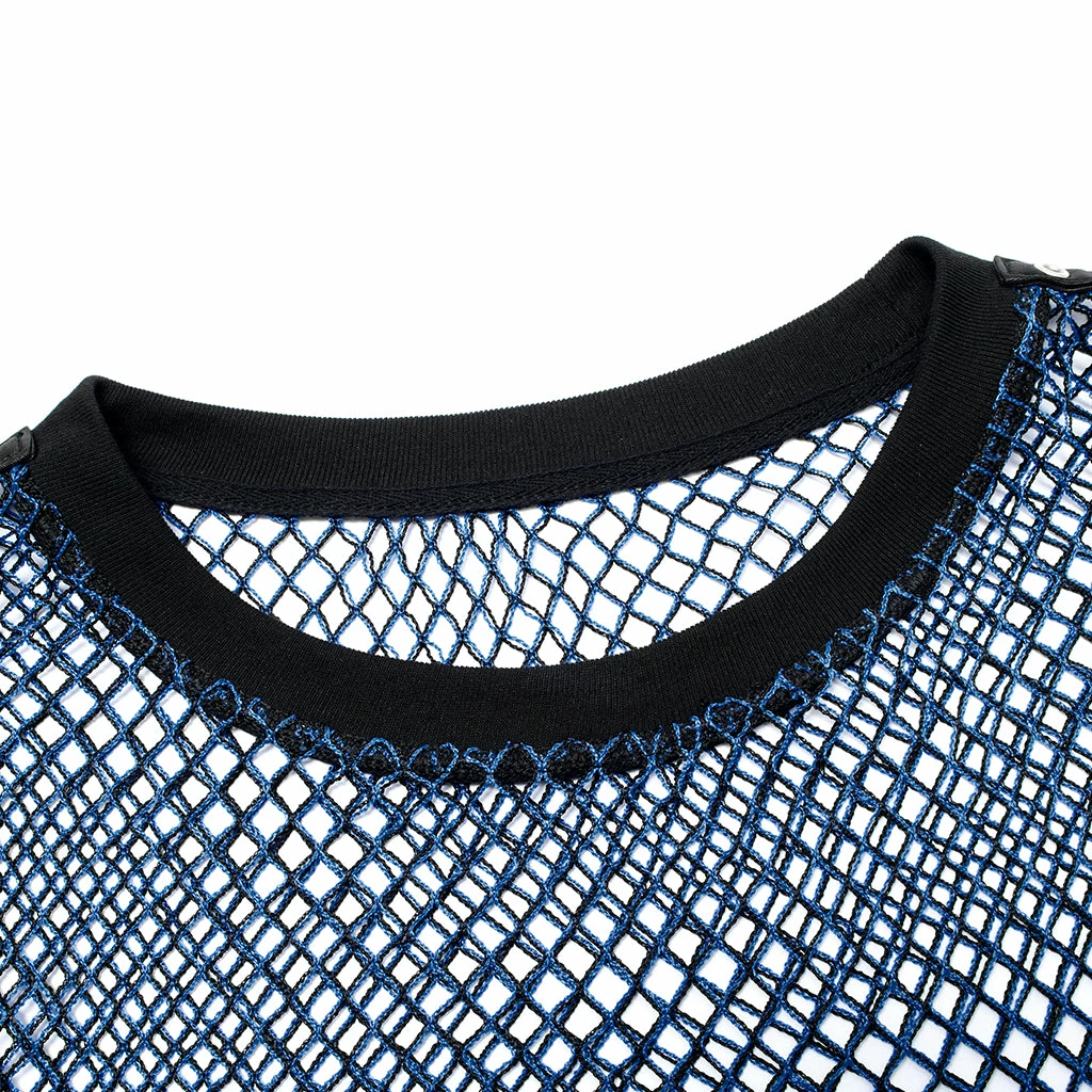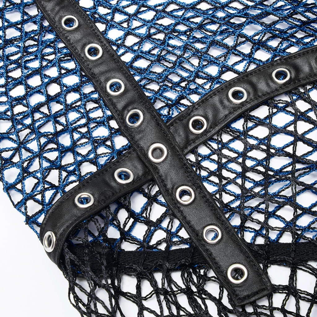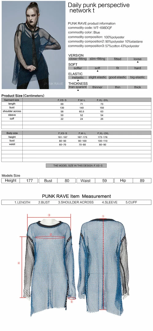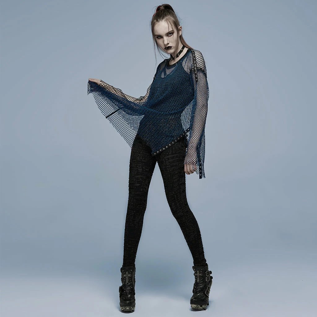 Stylish long sleeve mesh shirt by Punk Rave that is made of soft and comfortable non elastic mesh cloth. Made with a loose relaxed style with a longline fit and asymmetrical hem. This top looks awesome layered and features a blue body with one red sleeve and one blue sleeve.