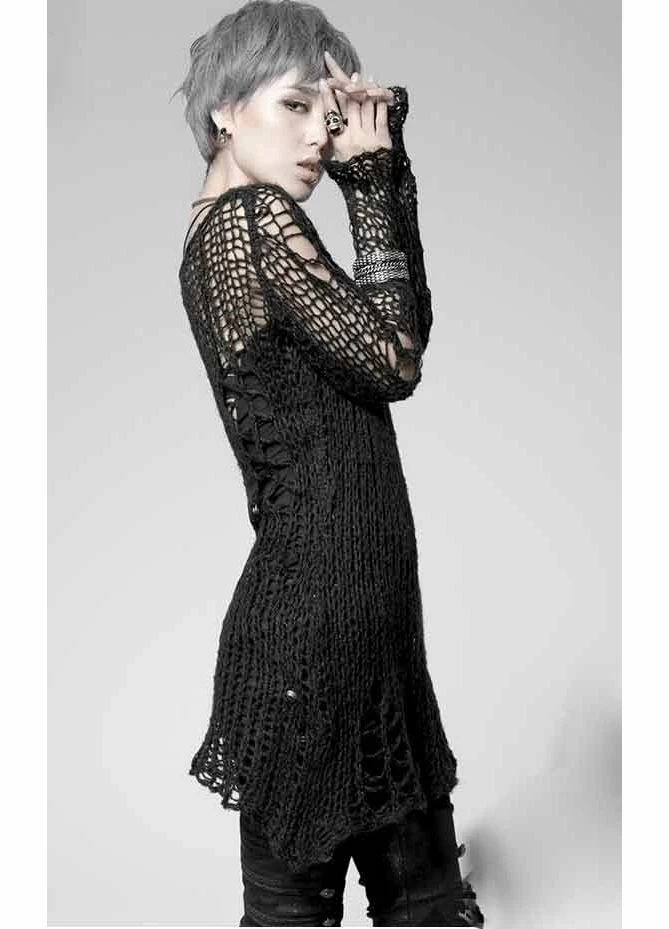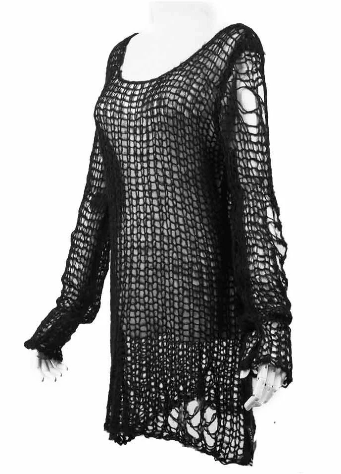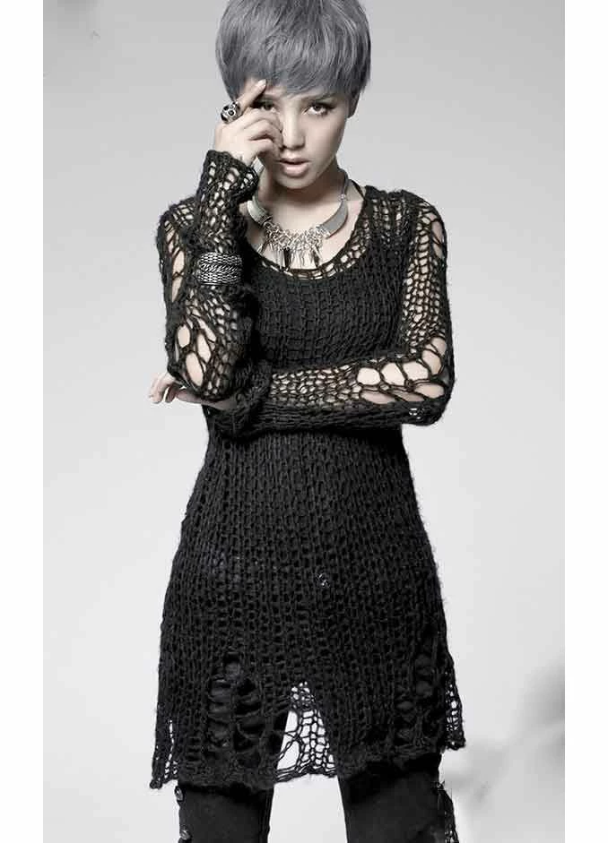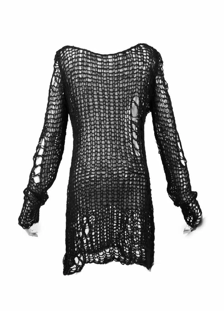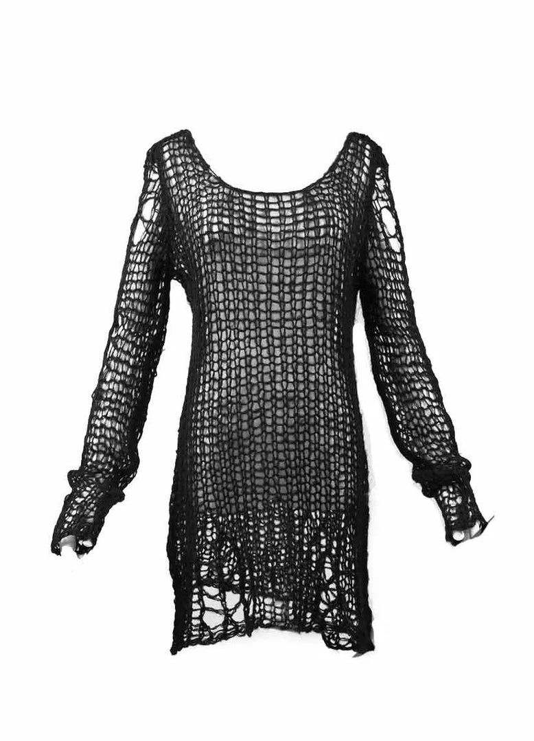 The awesome Ruin sweater from Punk Rave is the epitome of gothalyptic style. Made from a super soft acrylic and mohair blend, this lovely Gothic jumper is covered in distress detailing making it ideal for adding an extra layer of warmth while still showing off your awesome top underneath. From shoulder to hem, this sweater measures 33″ and fits size UK10 to UK 16 comfortably.