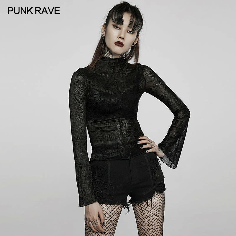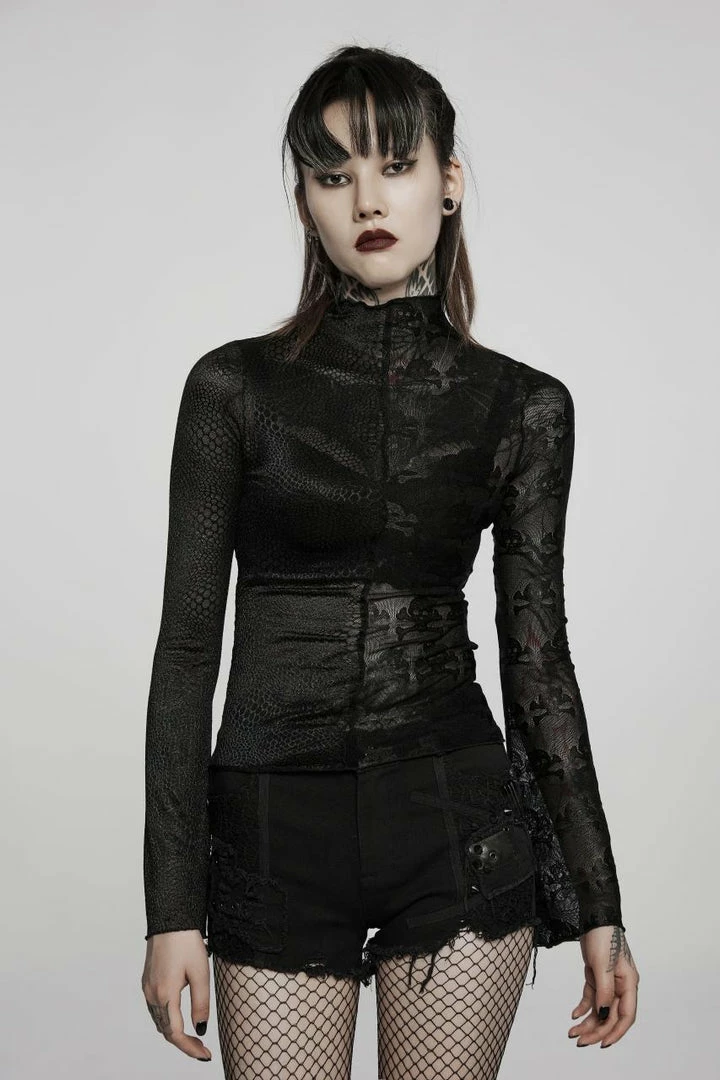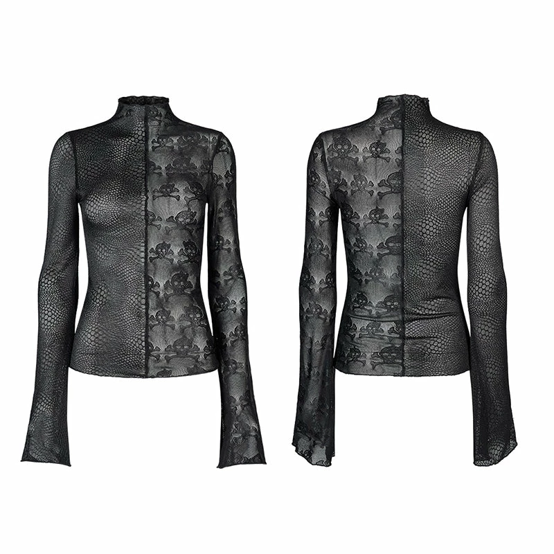 Gorgeous top from Punk Rave featuring long bell sleeves and a high neckline. With a leopard skin pattern to one side and skull & crossbones pattern to the other side, this awesome top look great on. For the perfect fit and fabric composition, please see Punk Rave’s size guide in the images.