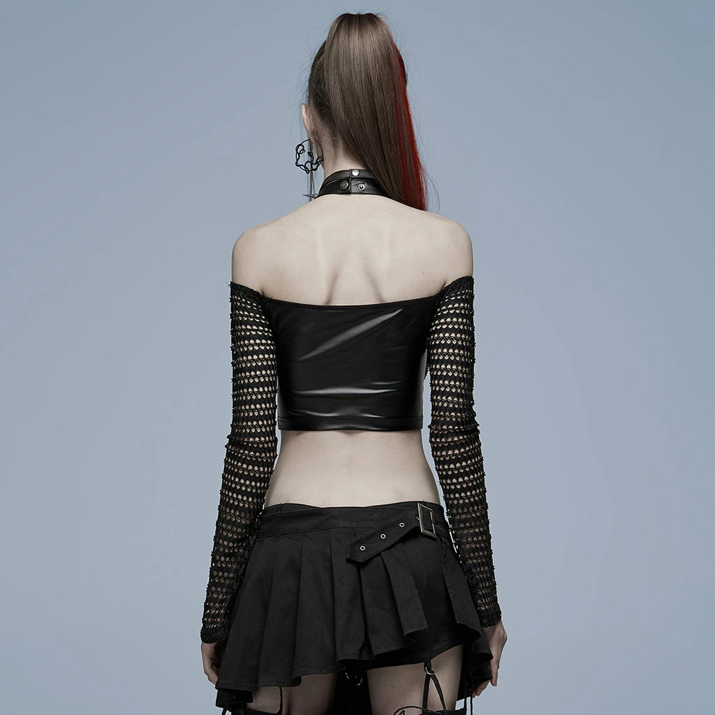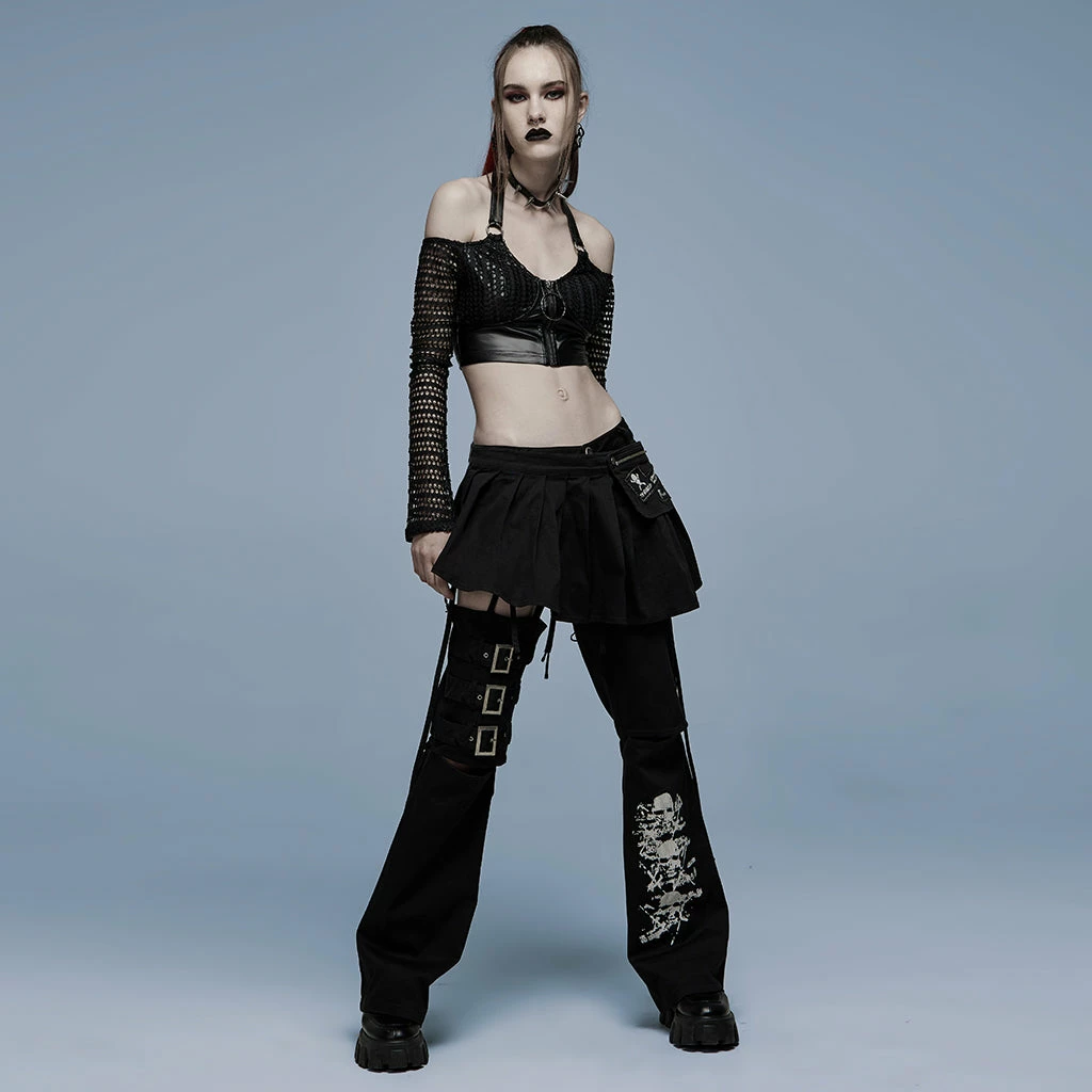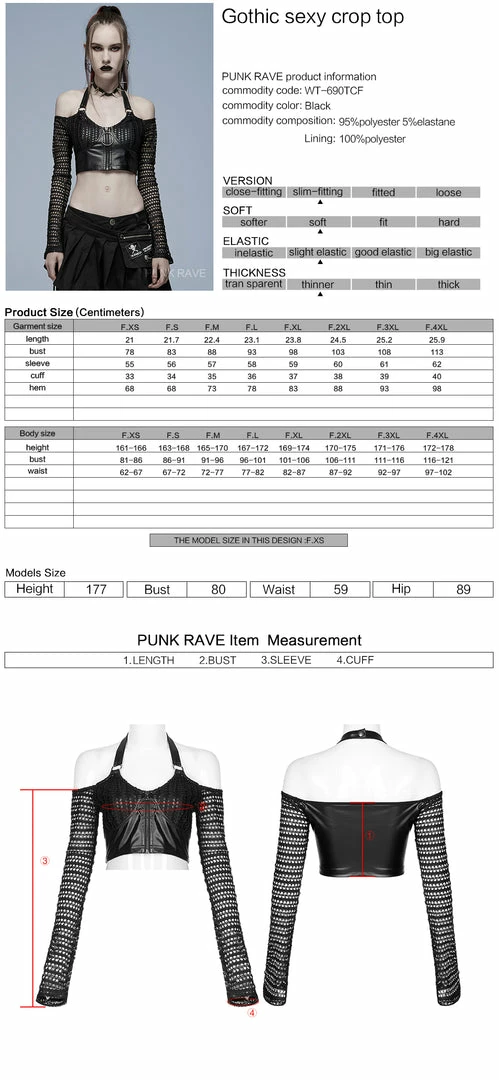 Powerful and seductive black Gothic crop top by Punk Rave. Made from a stretchy knitted fabric which is fitted to show off your body, this top features cold shoulders and a low back. This sexy black top also has a front zip fastening and looks amazing on a night out!