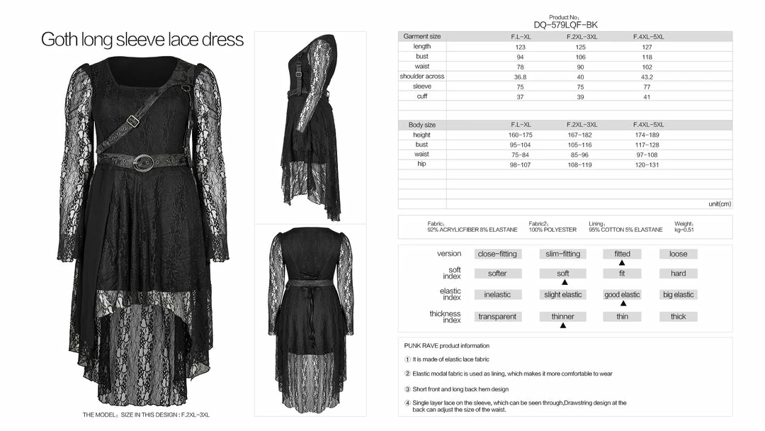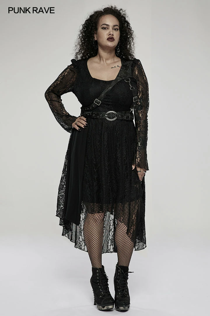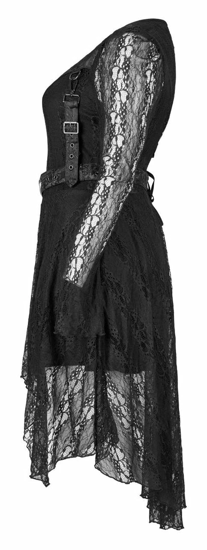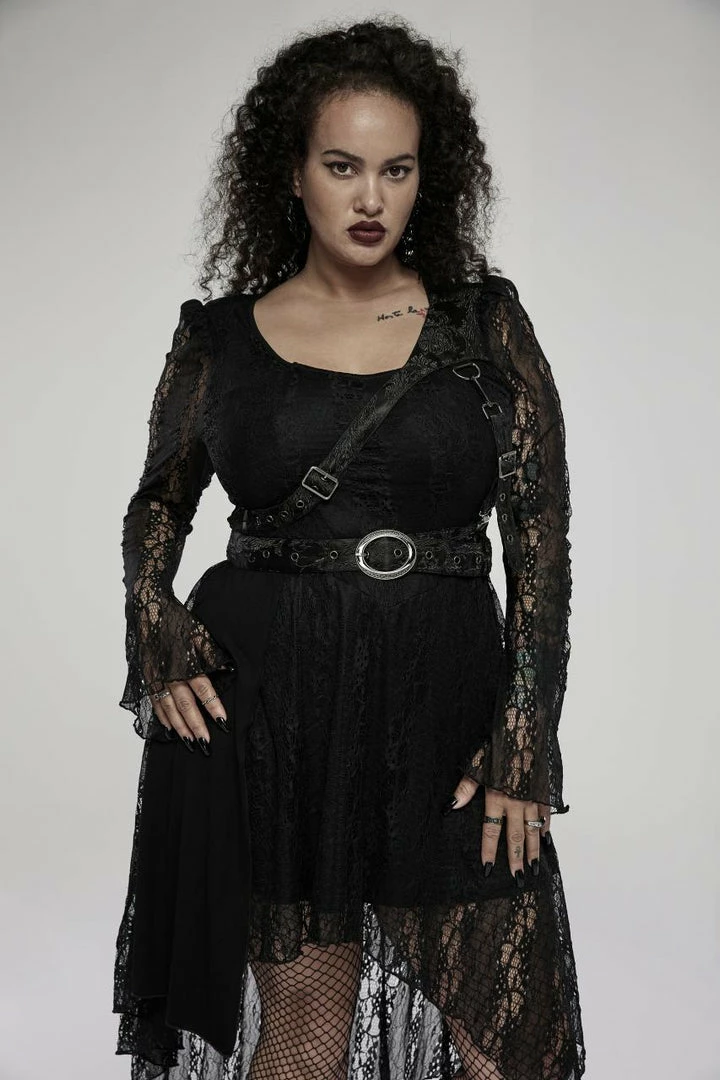 Stunning lace dress from Punk Rave featuring long lace sleeves and a high/low hemline. With a fully lined body and belted accents, this beautiful dress look great on. For the perfect fit and fabric composition, please see Punk Rave’s size guide in the images.