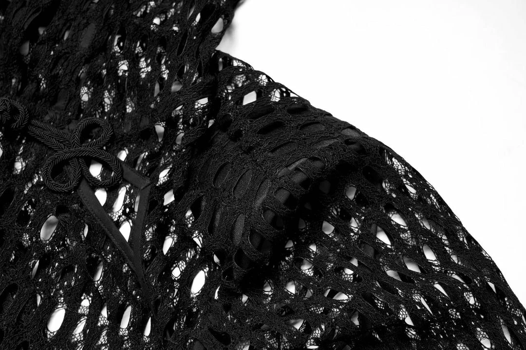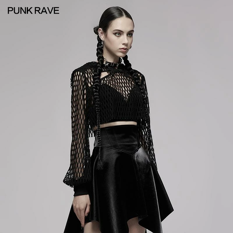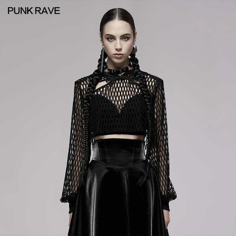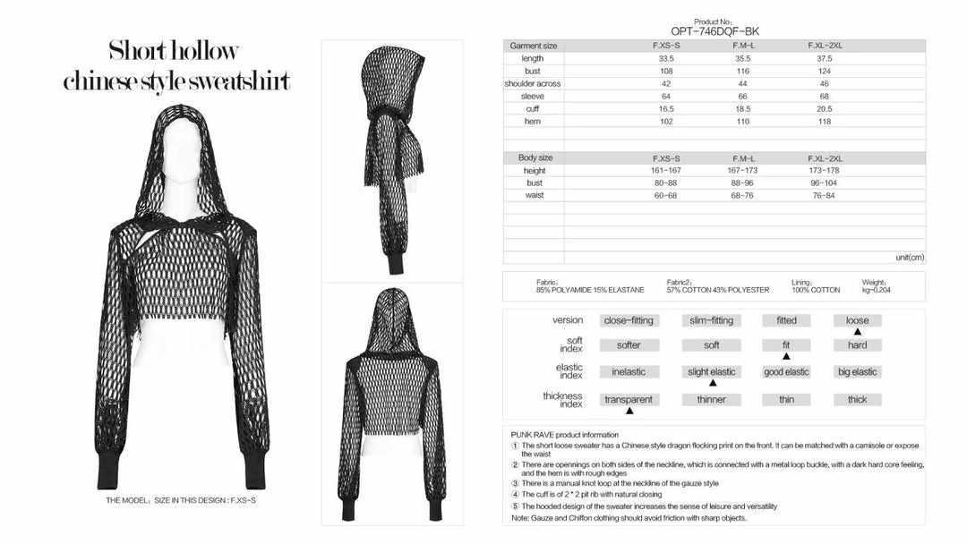 Striking large mesh hoodie from Punk Rave featuring an oversize hood and long bell sleeves. With cut-out detail and a frog button fastening, this gorgeous cropped hoodie is the perfect extra layer. For the perfect fit and fabric composition, please see Punk Rave’s size guide in the images.