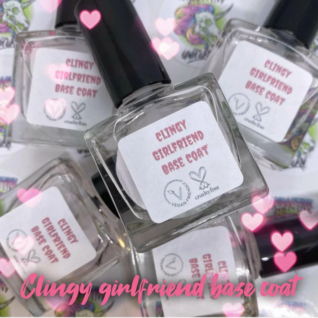 Radioactive Unicorn Clingy Girlfriend Base Coat 10ml: A base coat with extra benefits! Nail polish can last up to 3 times longer with this base coat and improves nail condition & hydration. It also fills in ridges and grips the polish in place.