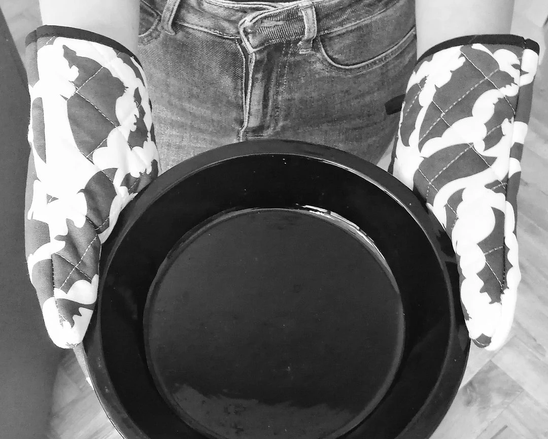 This awesome pair of oven gloves from Weird & Wonderful Ceramics come with one side quilted and have a fabulous black bats print on 100% white cotton fabric.