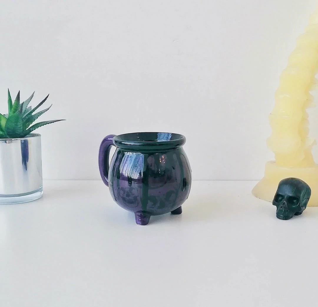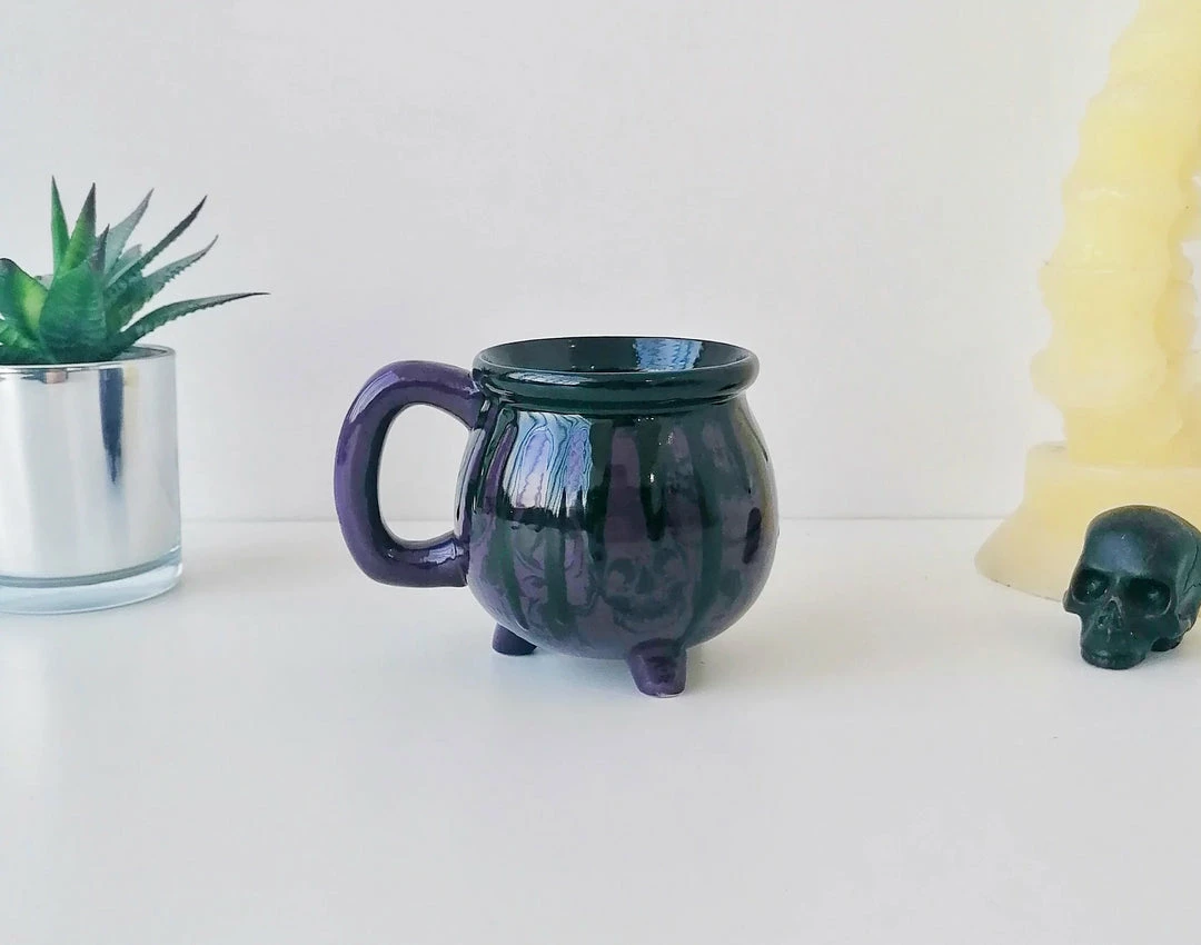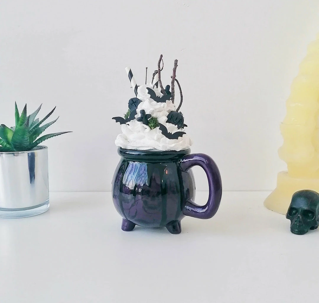 This amazing mug from Weird & Wonderful Ceramics has a cauldron shape and large handle. With a purple glaze and black skull design, this is the perfect mug for your favourite beverage.